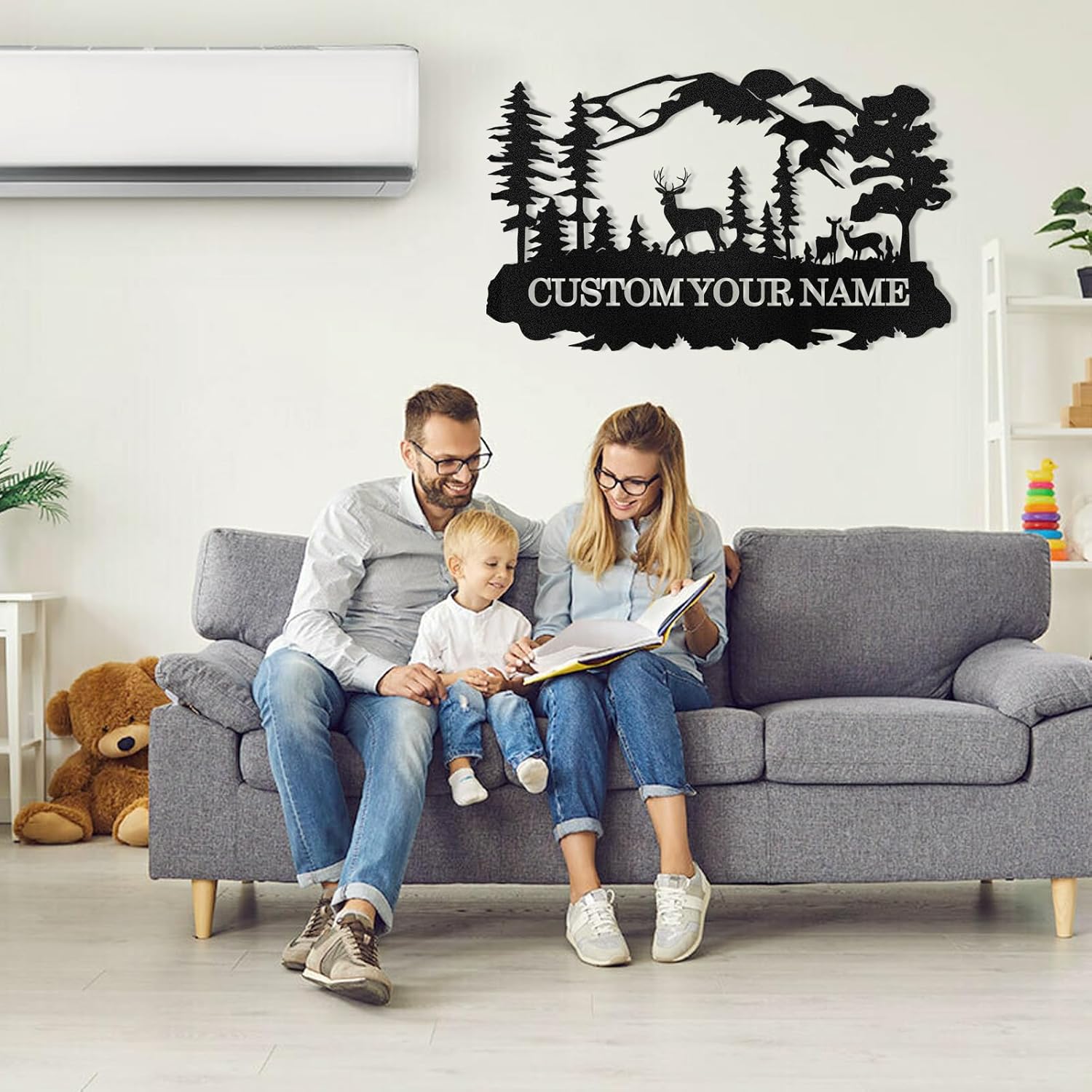 Custom Deer Metal Cabin Sign, Rustic Deer Wall Decor, Last Name Signs for Home, Custom Signs Outdoor Metal, Metal Wall Art, Hunting Decor, Hunter Gifts, Mountain Cabin Decor, Porch Sign