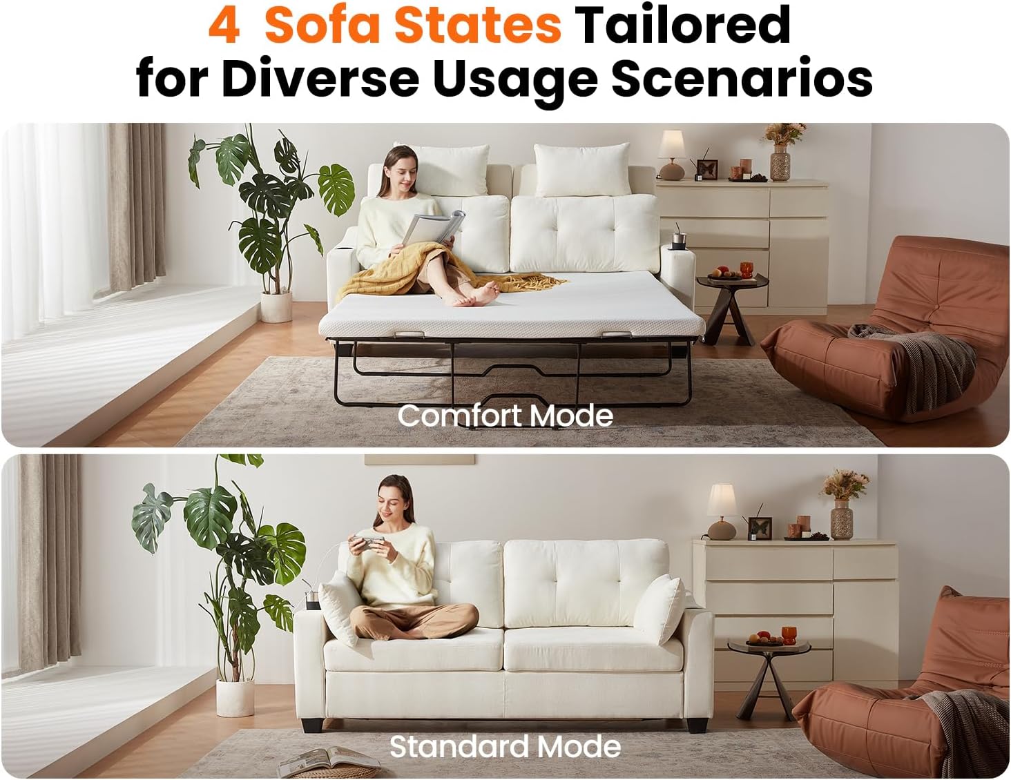 - 【Versatile 4-in-1 Sofa Modes for Every Moment】Designed to adapt to your lifestyle, this sofa transforms effortlessly between four configurations: Standard Mode, Comfort Mode, Nightlight Mode, and Sleep Mode. Whether you’re working, relaxing, or hosting guests, enjoy a flexible seating solution that fits any scenario