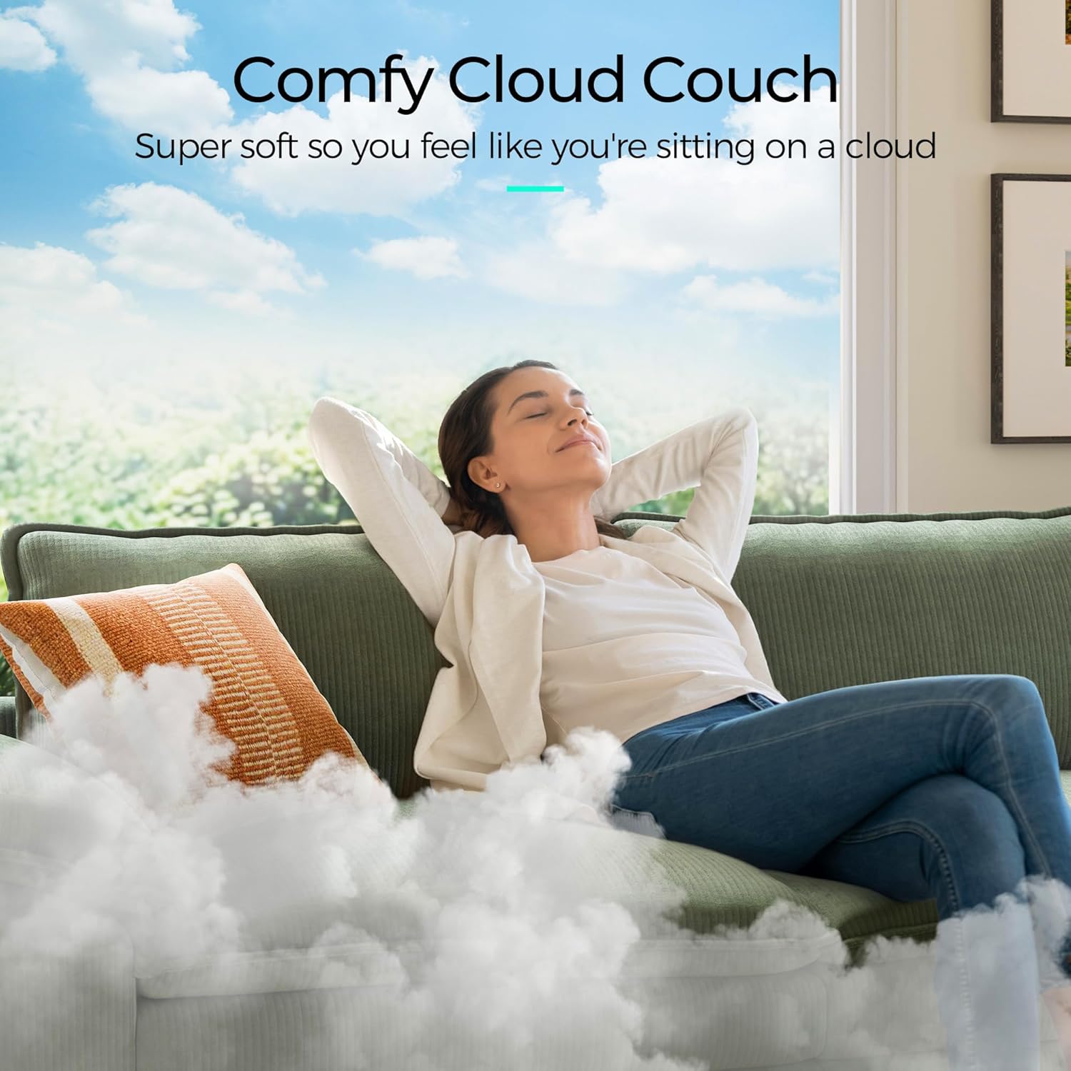 - Comfy Double-layer Seat Cushion Cloud Couch: Experience cloud-like comfort with our double-layer seat cushion. The combination of high-density cotton, sponge, and pocket springs provides superior softness and support, making every seat very soft. This sofa is designed to offer ultimate relaxation, whether you're lounging alone or hosting guests