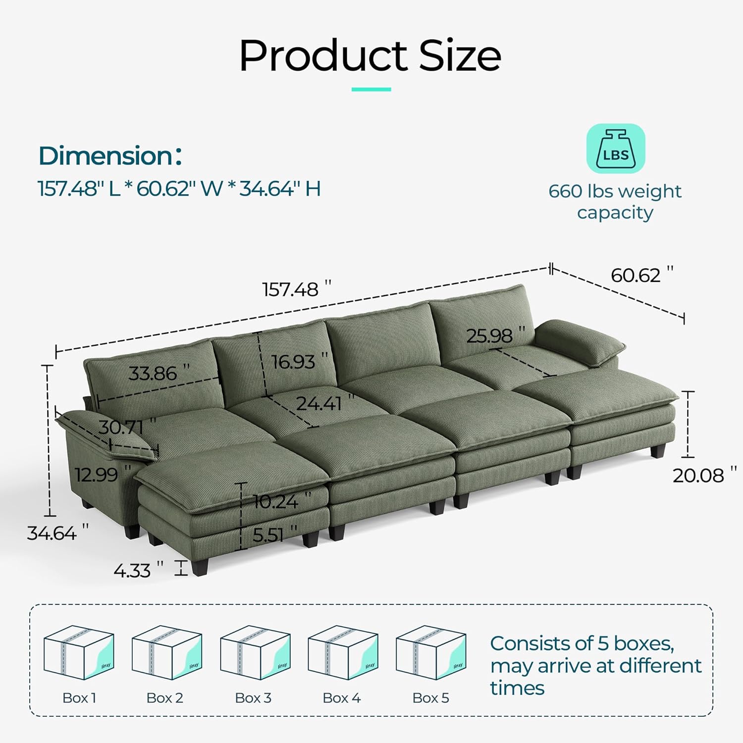 - Product Dimensions : 60.6"D x 157.4"W x 34.6"H