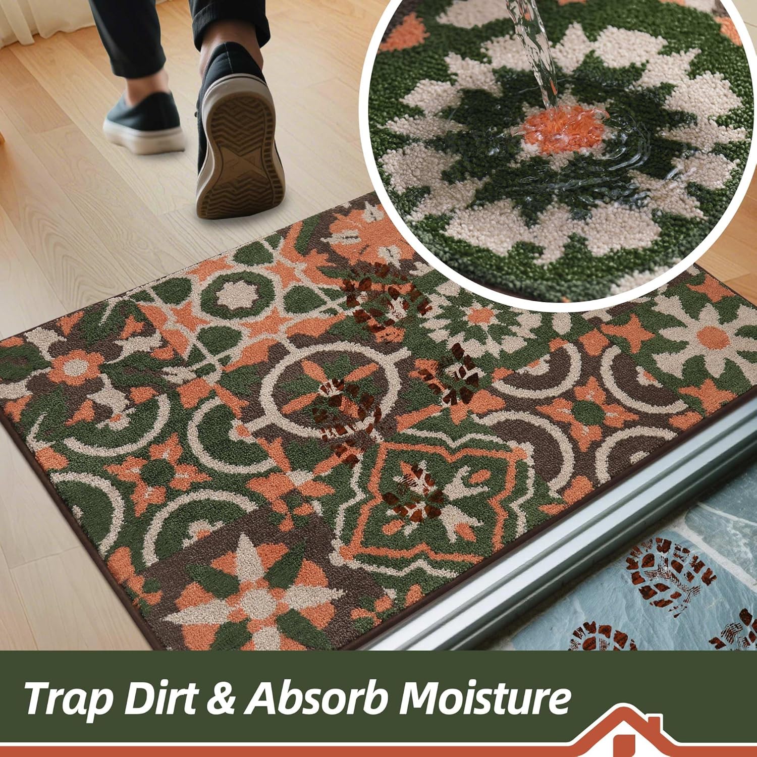 BEQHAUSE Dirt Trapper Door Mat 32" x 48", Non-Slip Entryway Rugs Washable, Floor Mat Stain Resistant and Absorbent Welcome Mat for Front Back Door, Muddy Wet Shoes & Paws, Boho Geometric Floral