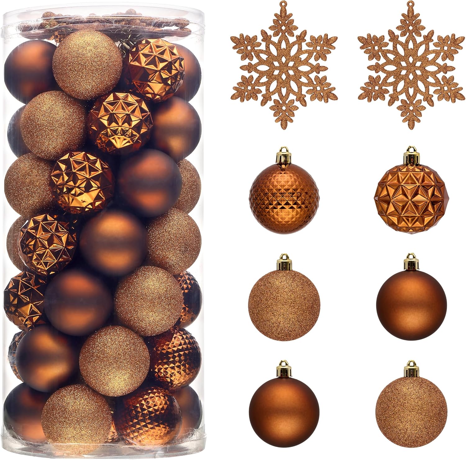 Valery Madelyn Christmas Tree Decorations Ornament Set for Fall Halloween, 50ct 2 Inches Bronze Copper Brown Shatterproof Christmas Ball Ornaments Hanging Xmas Holiday Party Decor
