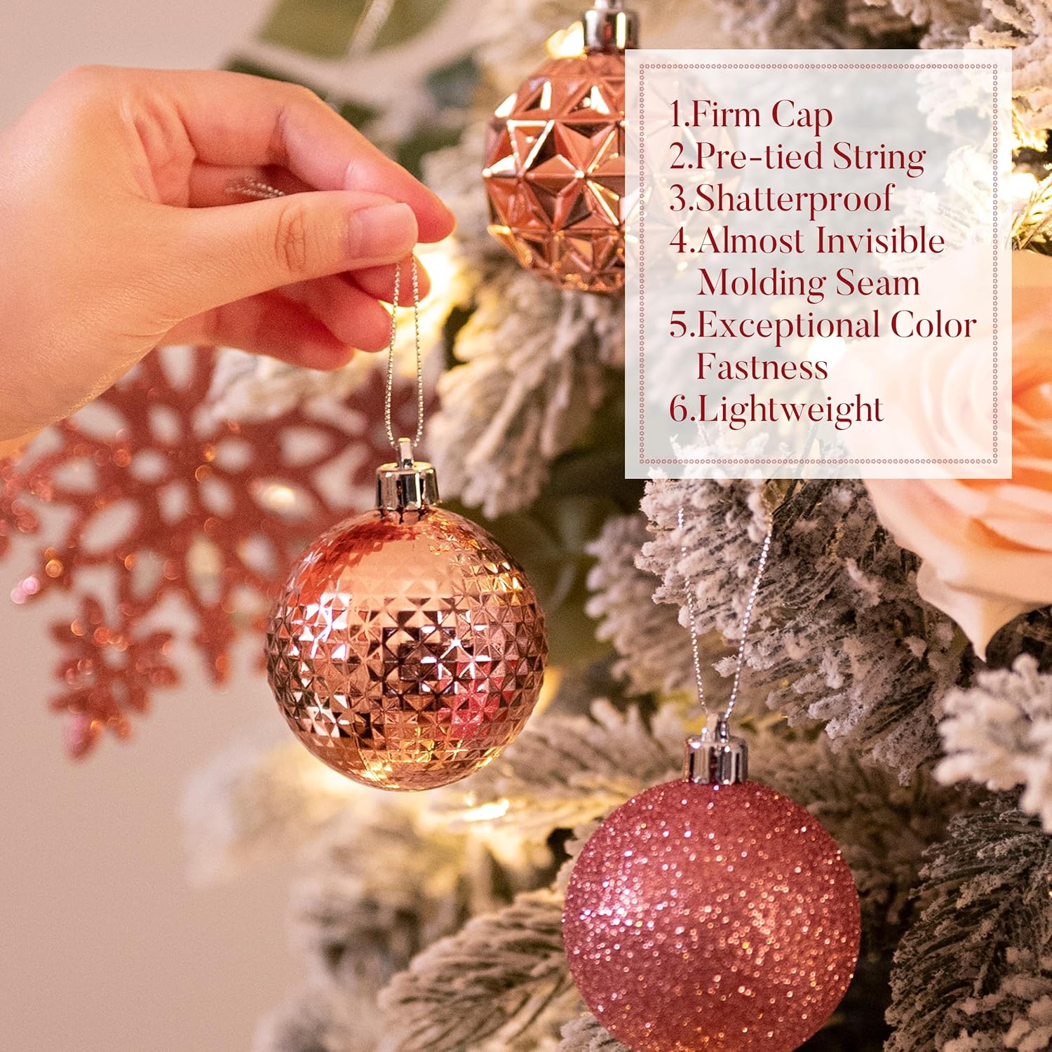 - 【Package and Size】This ornament ball set include 50pcs Christmas ornaments measuring 2 inches in diameter, featuring seamless connections for a polished look