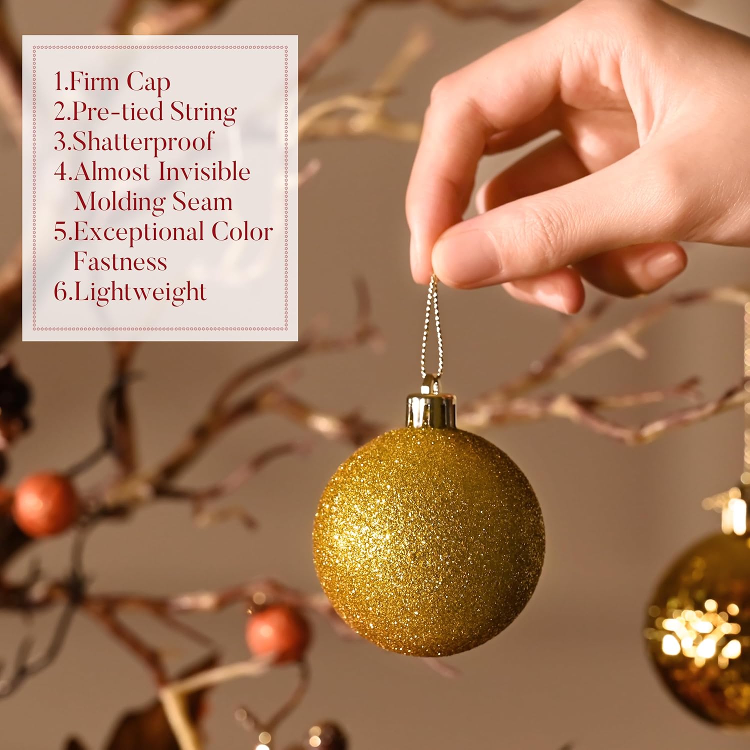 - 【Package and Size】This ornament ball set include 50pcs Christmas ornaments measuring 2 inches in diameter, featuring seamless connections for a polished look