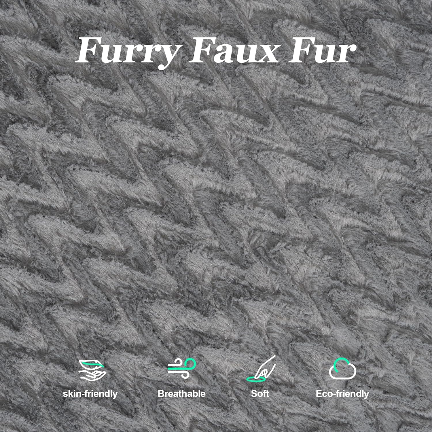 Hobestluk 3 in 1 Bean Bag Chair Giant Bean Bag Chairs for Adults with Chevron Plush Fur Cover Convertible Bean Bag Floor Cushion with Machine Washable Cover for Living Room (Chevron Plush Grey)