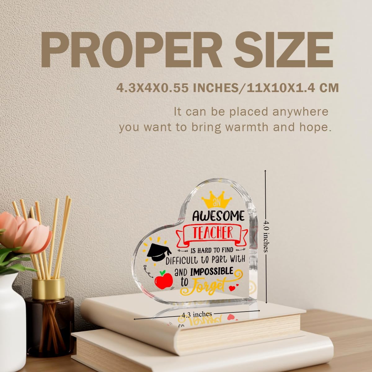 Teachers Day Graduation Season Opening Season Gifts Teacher Gifts Teacher Appreciation Gifts Best Teacher Gifts for Women Acrylic Heart for Her Coworker Friend Principal Educator Birthday Christmas