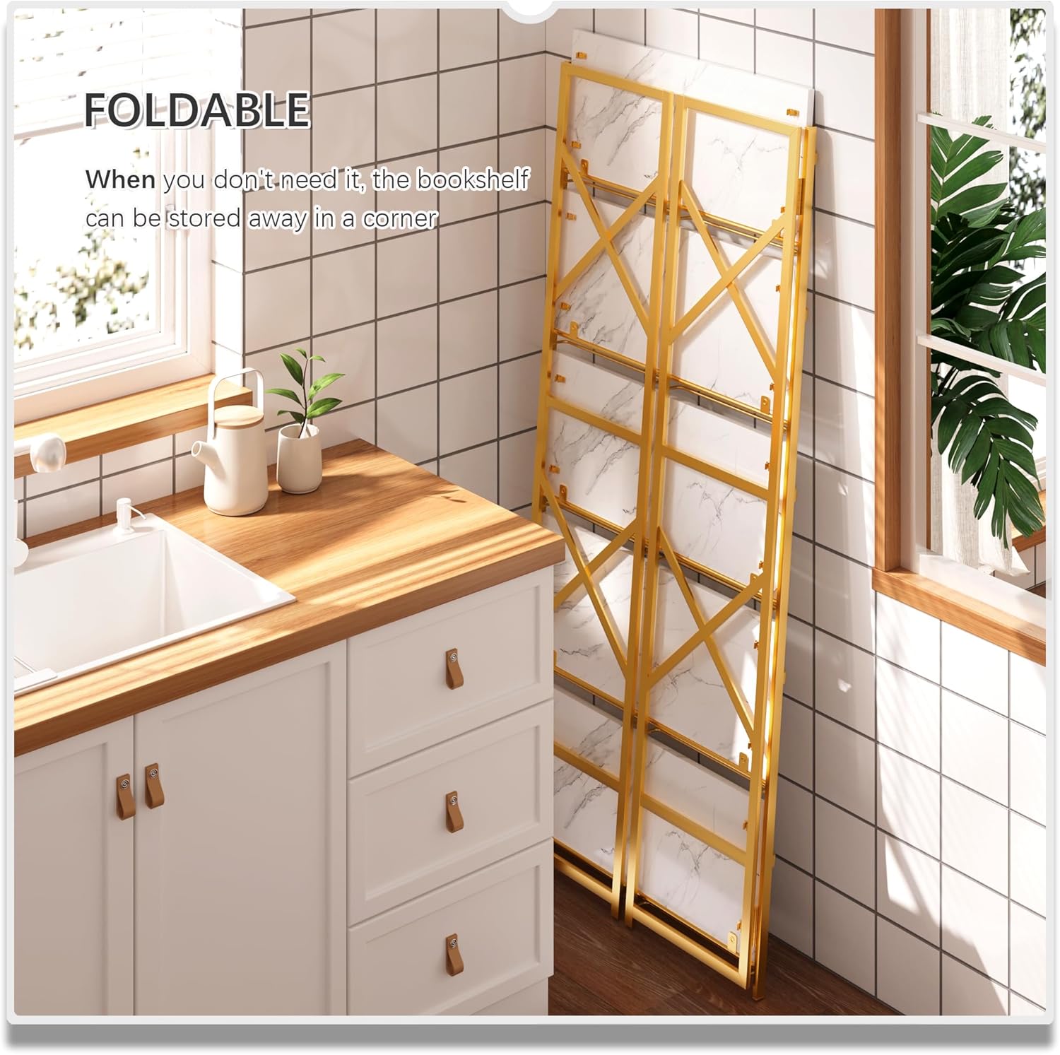 - 【The Unique Foldable Design Shelf】Allows you to hide the bookshelf behind the corner of the wall, behind the cabinet, or behind the sofa, etc, which can save your space. When you move, you don't need to disassemble it, and you can easily take it with you