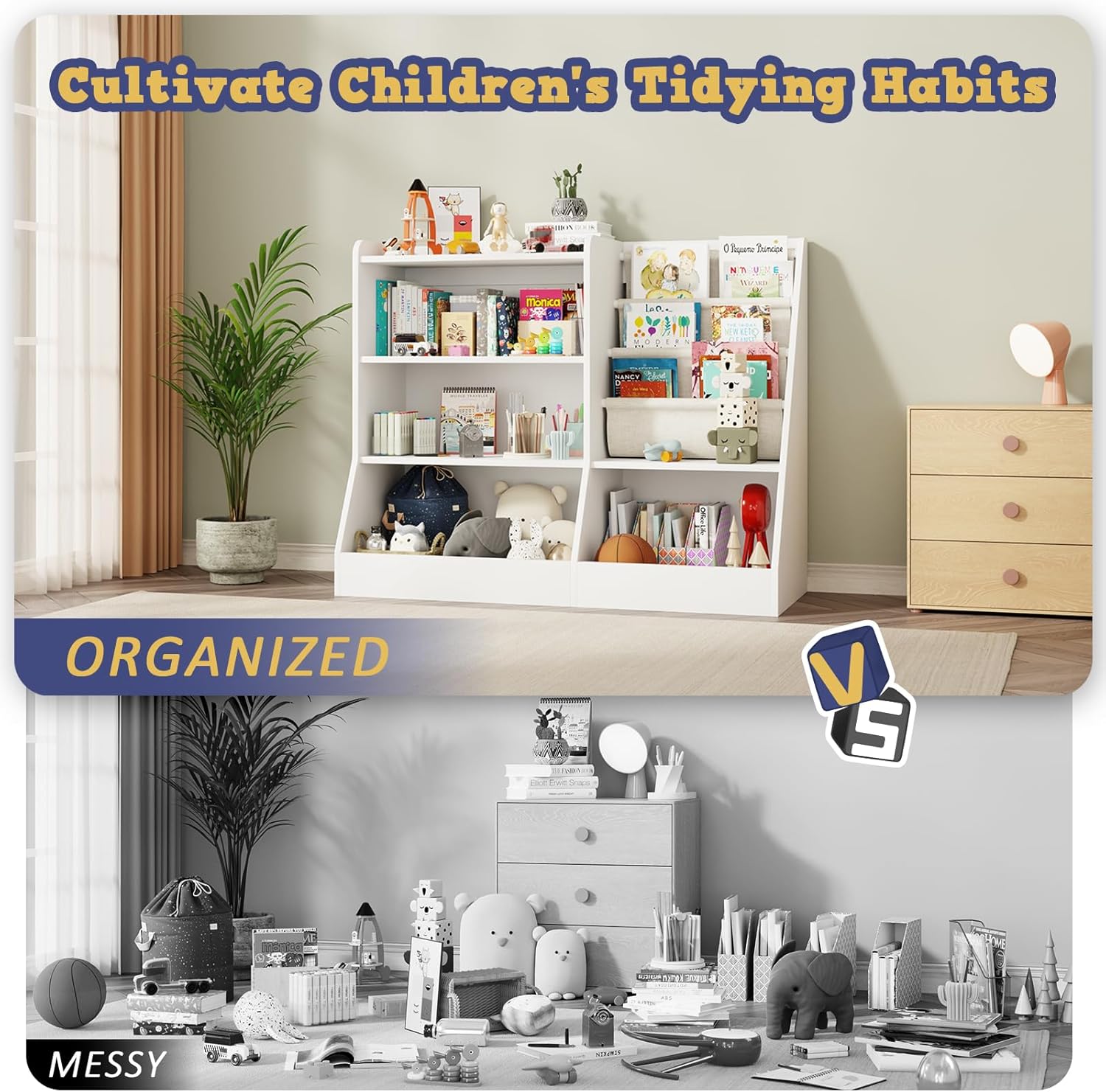 - Multi-Functional Use --- This Kids Wooden Bookshelf is suitable for bedroom, kindergarten, classroom, living room and other multiple places; which can create a comfortable, interesting reading corner for child to cultivate. This toddler bookshelf can help children to tidy up their room neatly, which can be a good way to develop children's independence and organization.