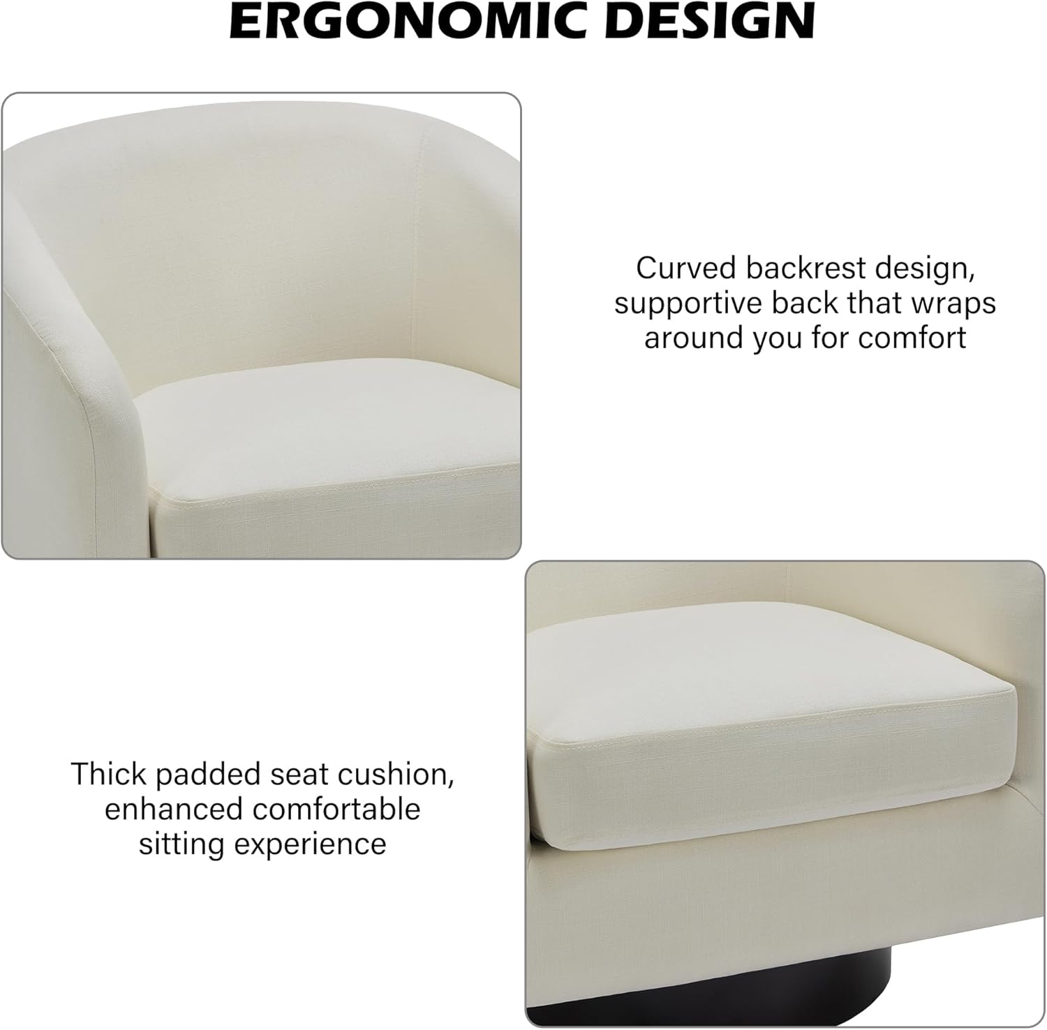 - 360 Degree Swivel Barrel Chair: This 360 degree round swivel chair designed for your leisure comfort. Heavy solid turntable, making it more stable and not wobbly