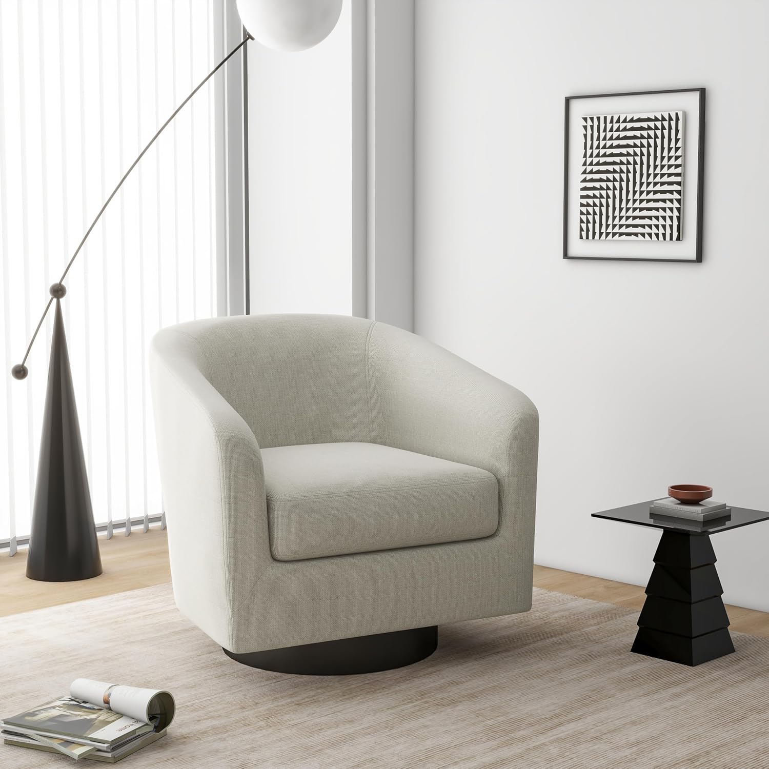 Swivel Barrel Accent Chair, Modern Round Linen Arm Chair for Living Room, Bedroom, Comfy Club Reading Chairs for Adults(Linen Fabric, Beige, Set of 1