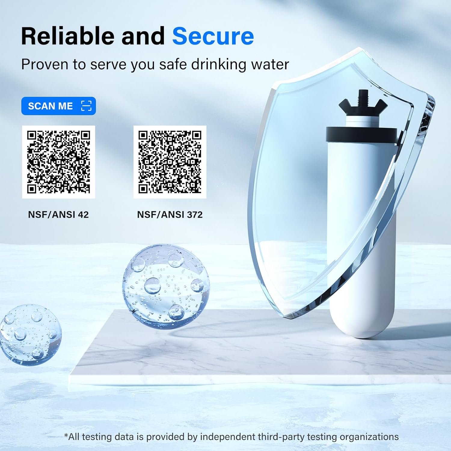 - 【Safe and Washable】The replacement for Berkey or ProOne water filter is certified against NSF/ANSI 372 standard for lead-free materials. Furthermore, this filter uses BPA-free housing, ensuring its safety. When sedimentation appear on the surface of the filter element, you can use the included sponge to scrub the surface of the filter element to extend the service life of the filter element, but do not use soap or other cleaning materials (otherwise it will clog/damage the filter pores).