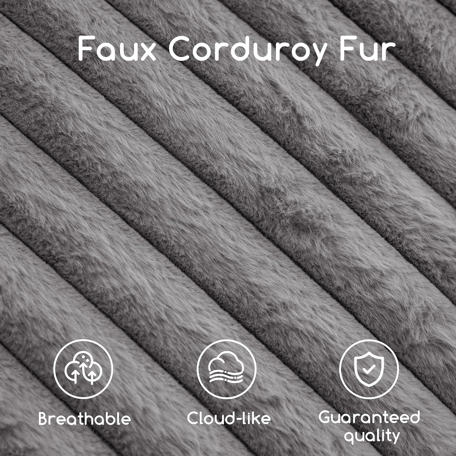 HIGOGOGO Round Stuffed Pouf Ottoman, Stripe Faux Fur Poufs with Foam Chunk Filling, Furry and Fluffy Pouf Foot Stool Storage Ottoman, 20 X 15 Floor Poufs Foot Rest for Living Room, Grey