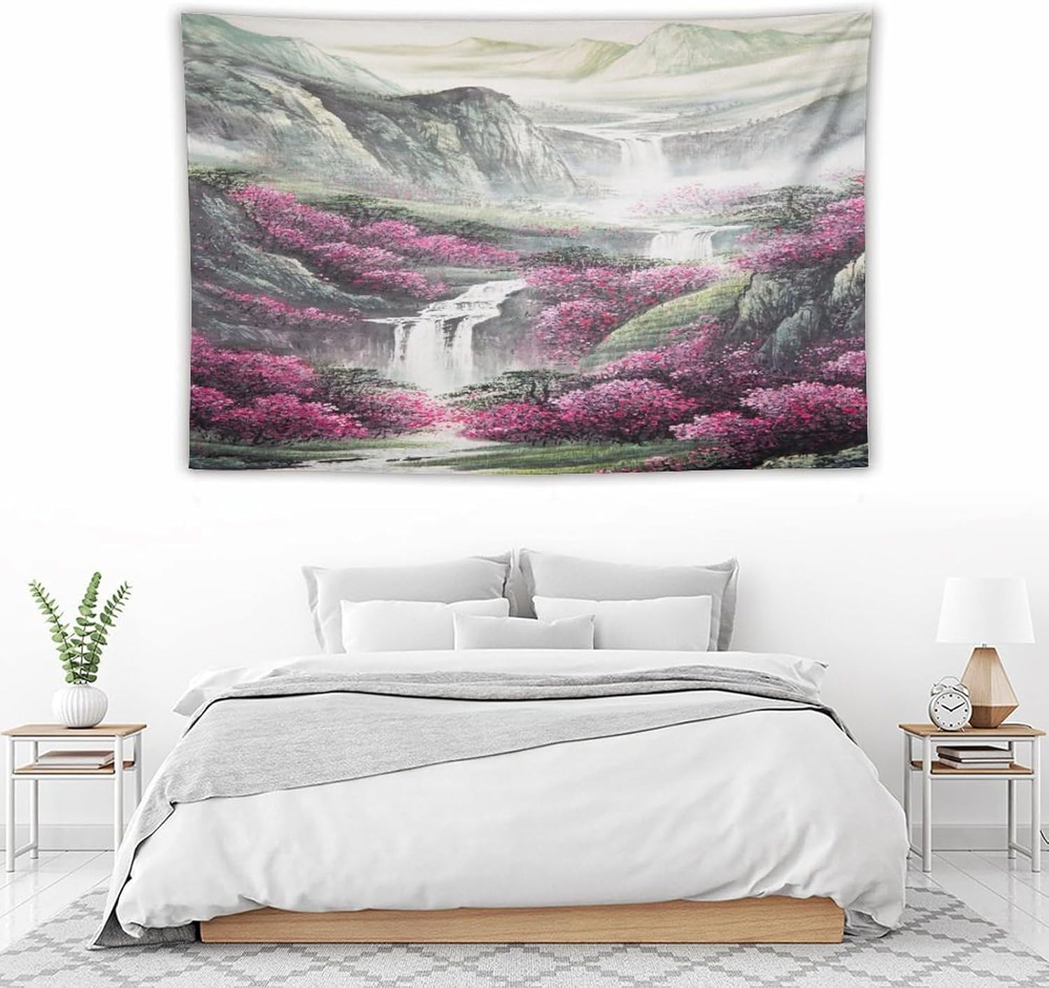 Japanese Tapestry, Red Plum Blossom Mountain Tapestry, Asian Japanese Wall Tapestry, Nature Landscape Tapestries for Bedroom Living Room Decor 60"x40"