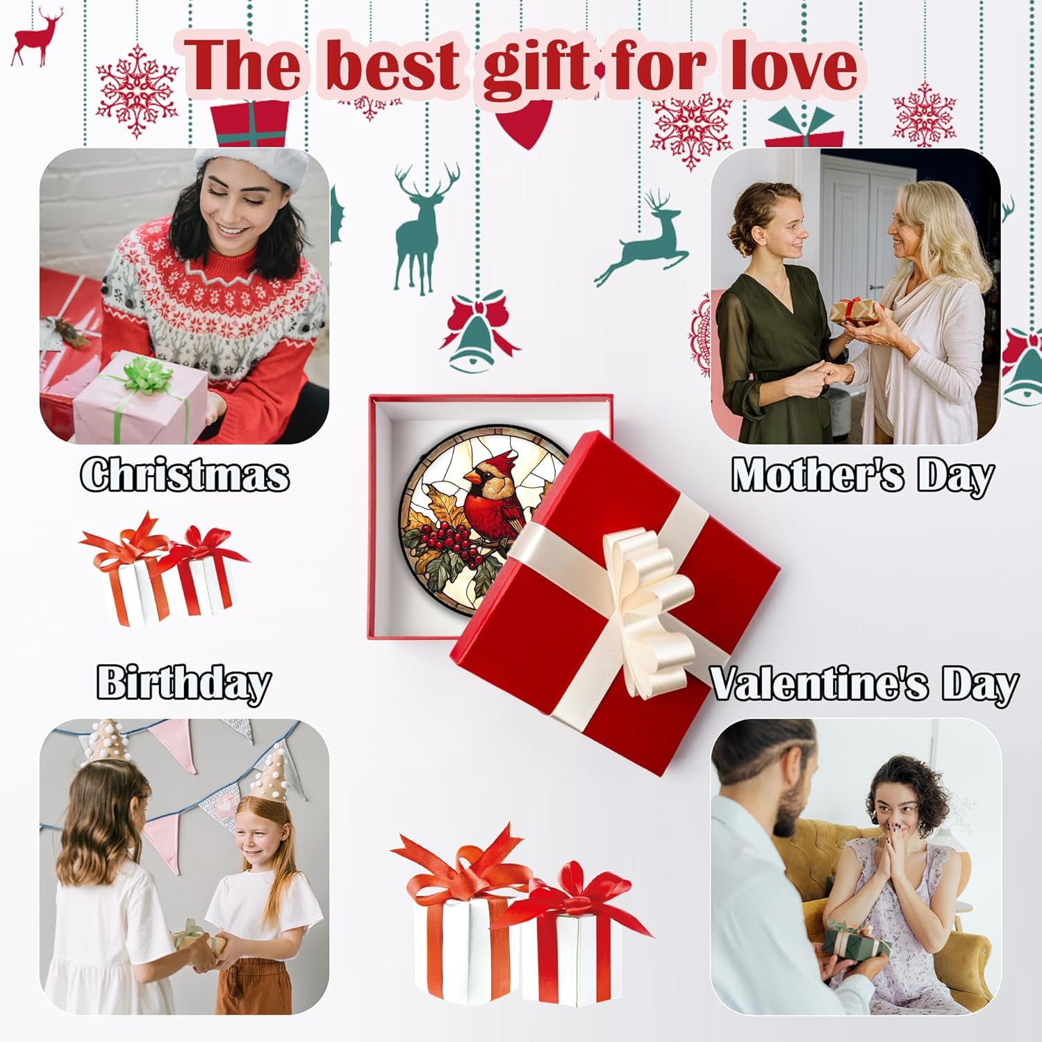 Stained Glass Window Hanging, Birds on a Branch Cardinal Sun Catchers Diamond Glass Panel Hangings Suncatcher Decor for Birthday for Women, Men, Wife, Aunt, and Mom 14.9x14.9 in