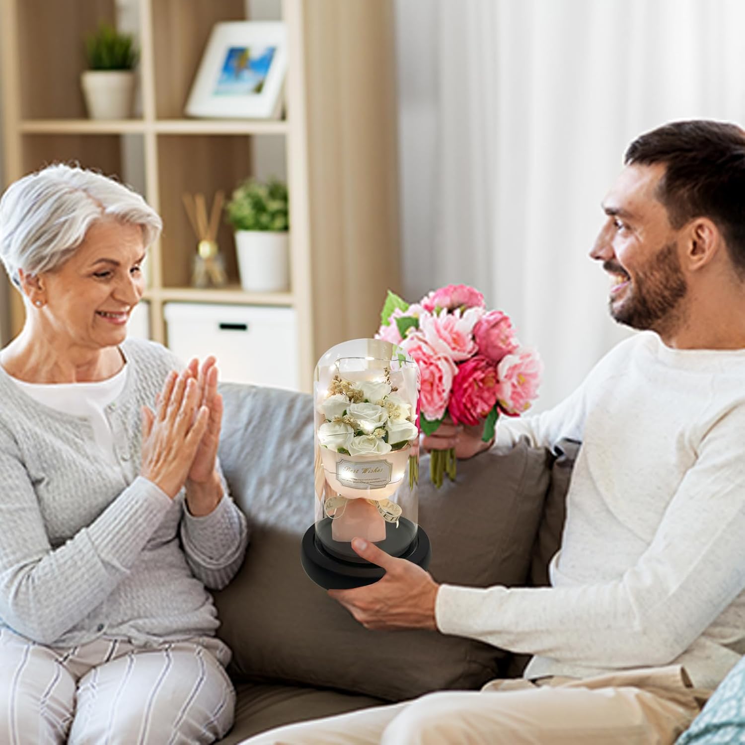 - 【Valentines Flowers Gifts Come With Happiness】:Women Gifts from daughter son. Valentines gifts for her. The twinkle lights wrapped around the flower rose bouquet in glass dome. Everyone will fascinate it when it light at romantic nigth. Get it on the special day, get happiness and sweet time.