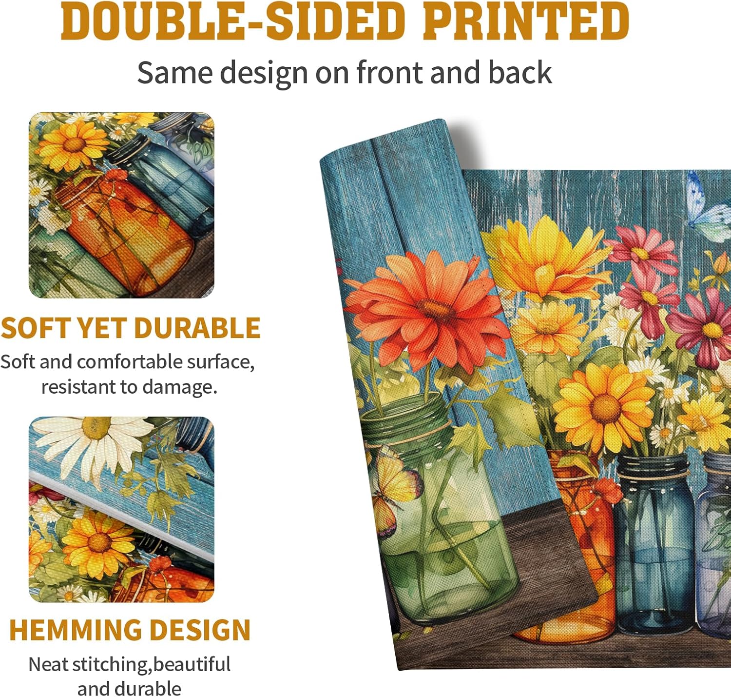 - PERFECTLY SIZE: The rustic floral placemat set of 4, Each daisy vase place mats is 12x18 inch (30 cmx45 cm) that can exactly fits your needs to use in all kinds of situations