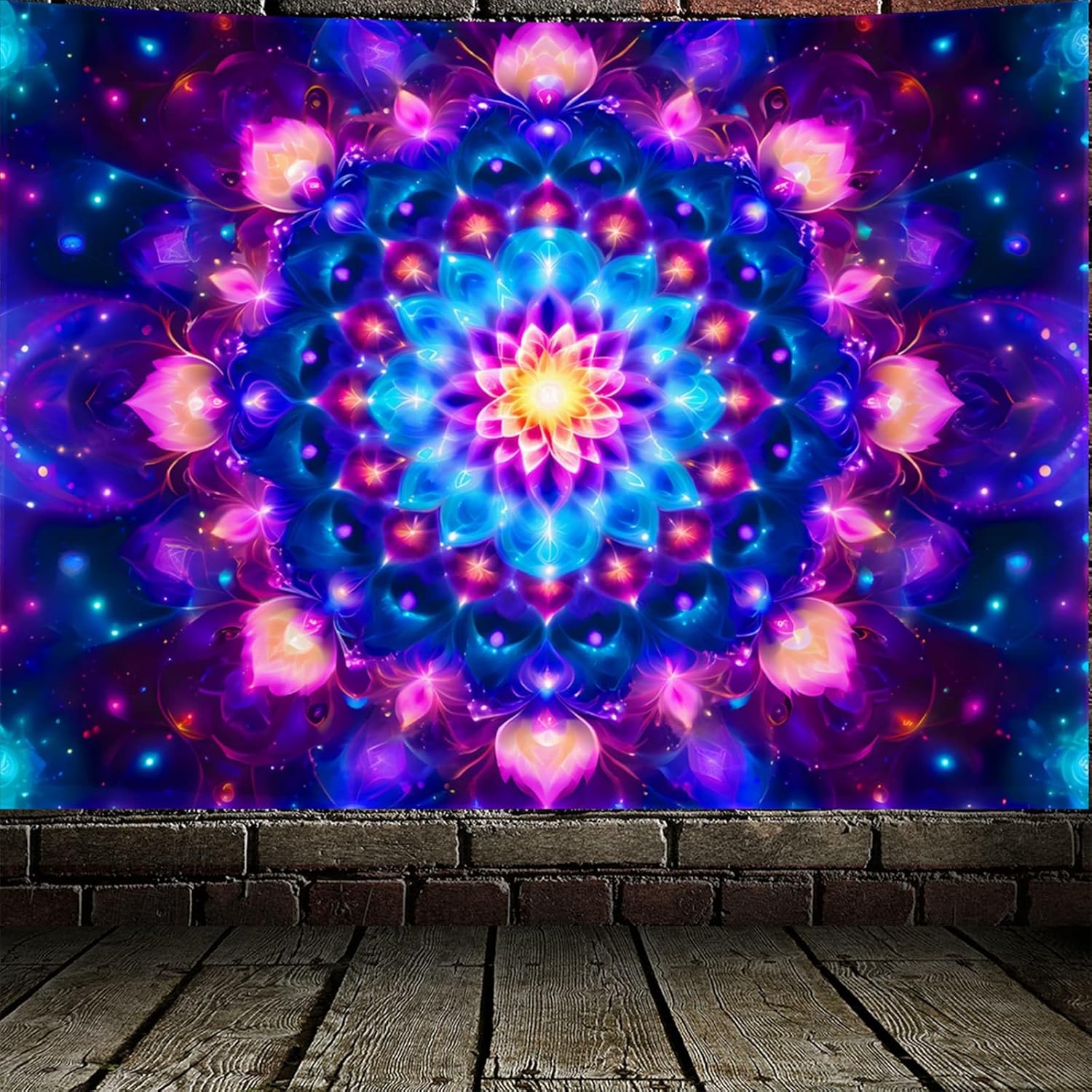 PSYHILAR Blacklight Mandala Tapestry for Bedroom, Psychedelic Black Light Posters for Adults and Teens, Colorful UV Reactive Aesthetic Bohemian Art Wall Hanging Decor (60 x 50 Inches)