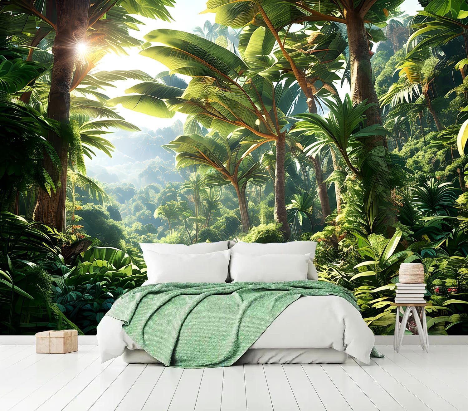 AFZEVEB-Green Tree Wall Mural Tropical Jungle Wallpaper for Bedroom 114"x74"(Not Peel and Stick)