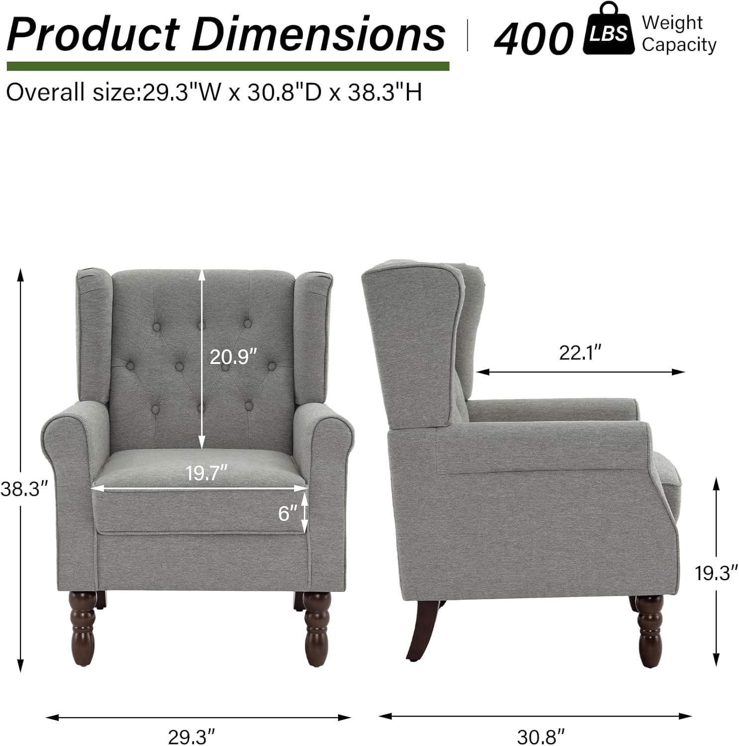 Accent Chair, Upholstered Armchair with Button Tufted High Back & Solid Wood Legs, Comfy Wingback Reading Single Sofa Chair for Small Spaces, Living Room, Bedroom (Light Grey, Set of 2)