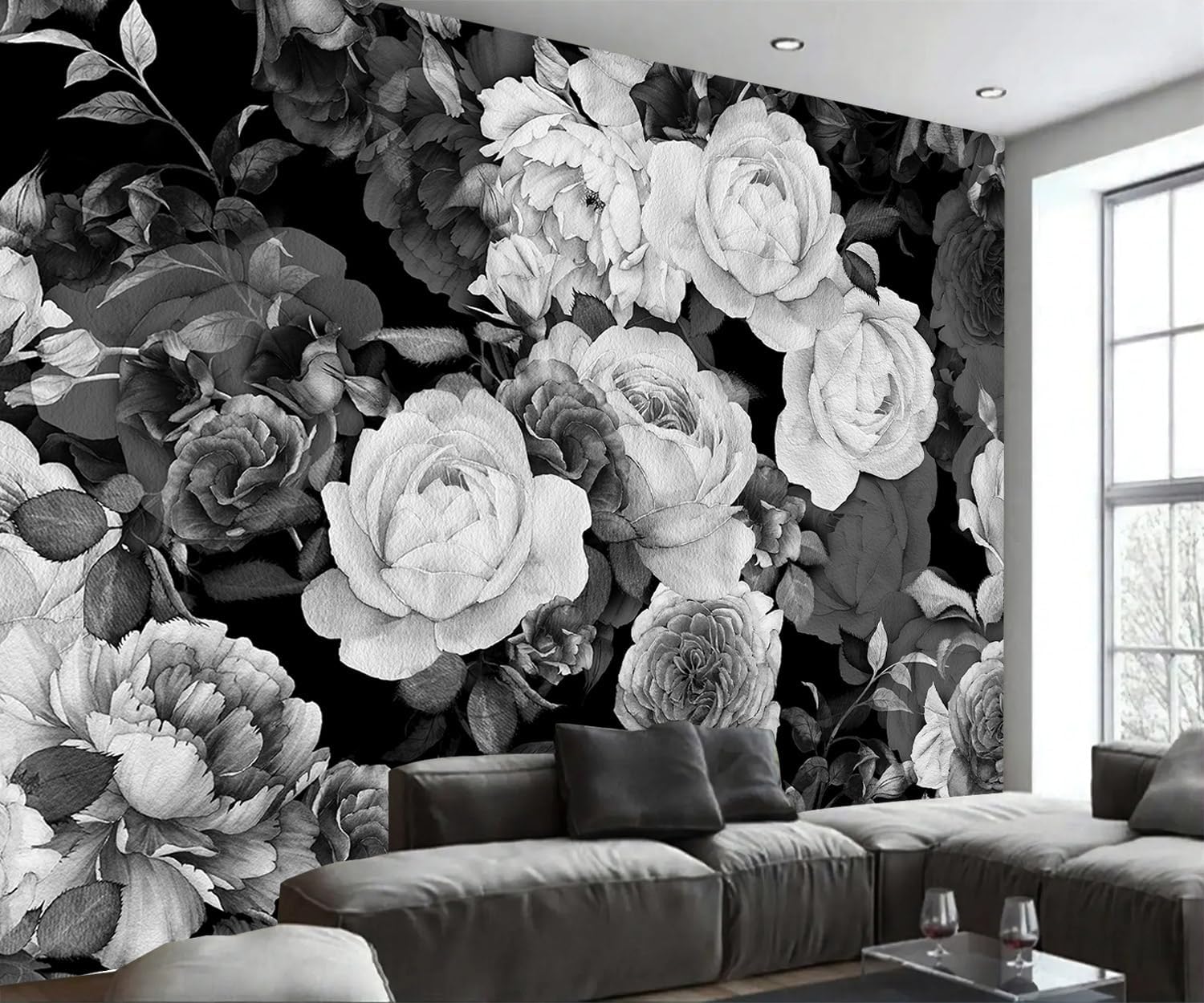 AFZEVEB-Dark Peony Wallpaper Watercolor Rose Wall murals for Bedroom 159"x107" (Not Peel and Stick)
