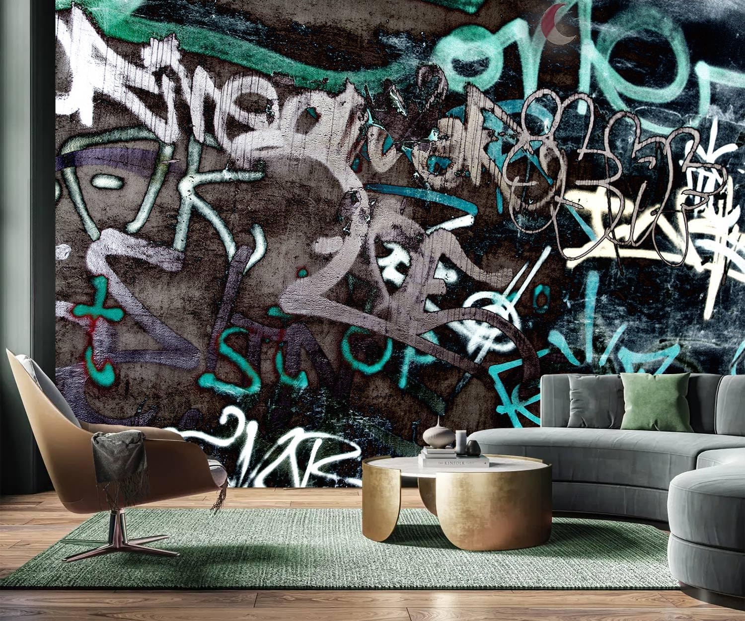 AFZEVEB-Black and White Art Graffiti Wallpaper Wall murals for Bathroom 136"x96" (Not Peel and Stick)