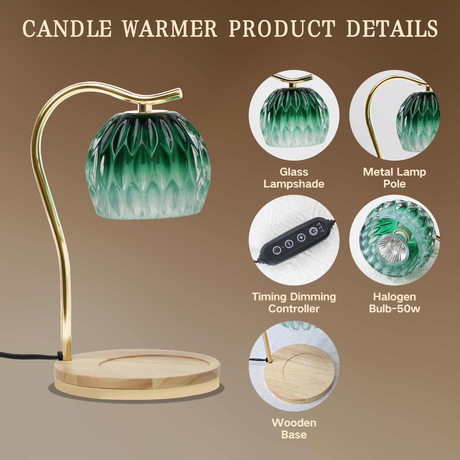 - 【Fit All Size Candles & Perfect Home Decor】The wax warmers with 6.6inch wooden base and height adjustment compatible with all size candles. Good choice for those who are in apartments not allowed open-flame candles. The candle warmer adopts a Retro style design and is a delicate functional decorative lamp, suitable for living rooms, bedrooms, offices, yoga rooms, cafes, etc. It can also be used as a bedside lamp to create a sleep-inducing atmosphere.