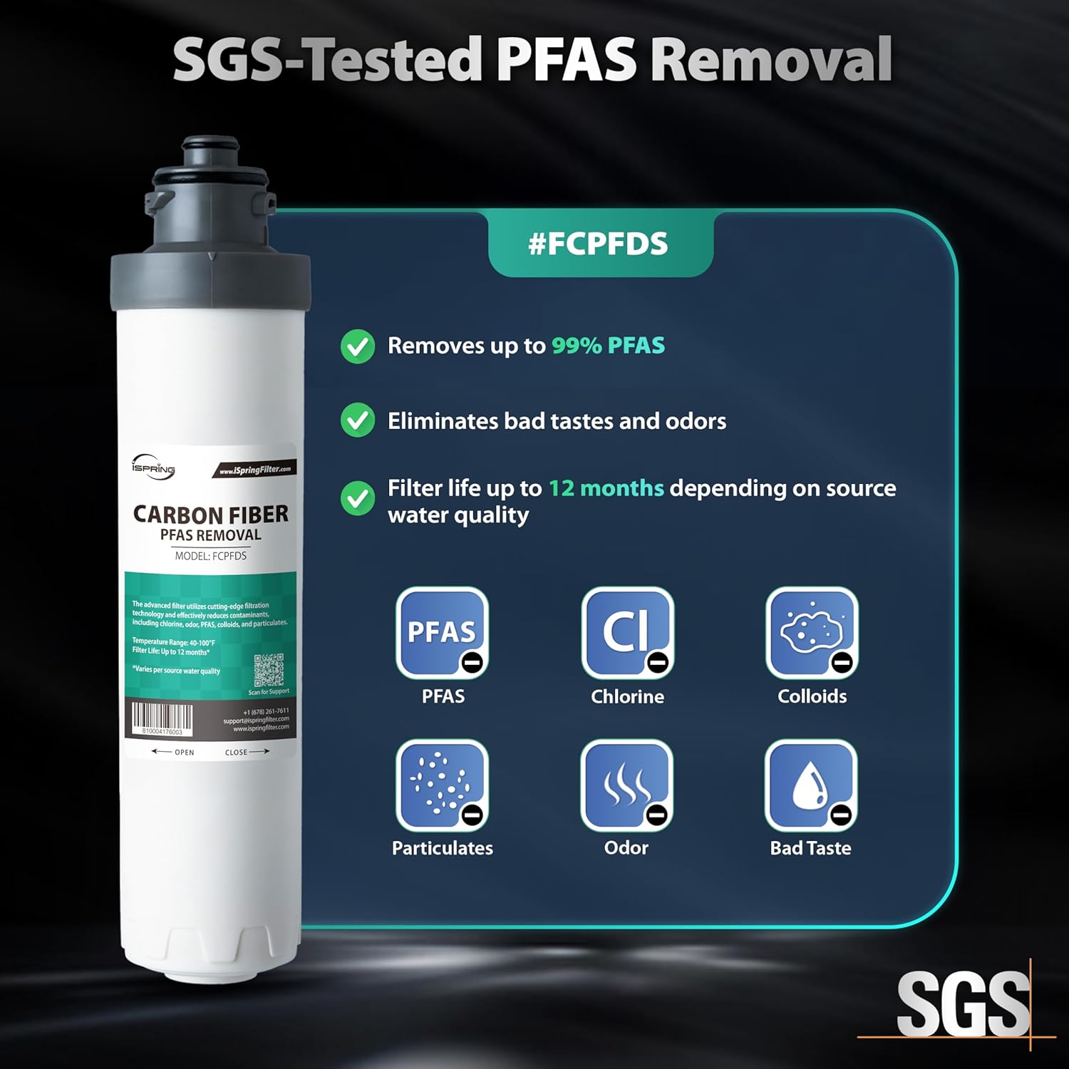 - 【SGS-Tested PFAS Removal】 The media of the FCPFDS filter is rigorously tested by SGS, effectively removing up to 99% of PFAS from your water. It also reduces chlorine, bad odors, colloids, and particulates for cleaner, safer water.