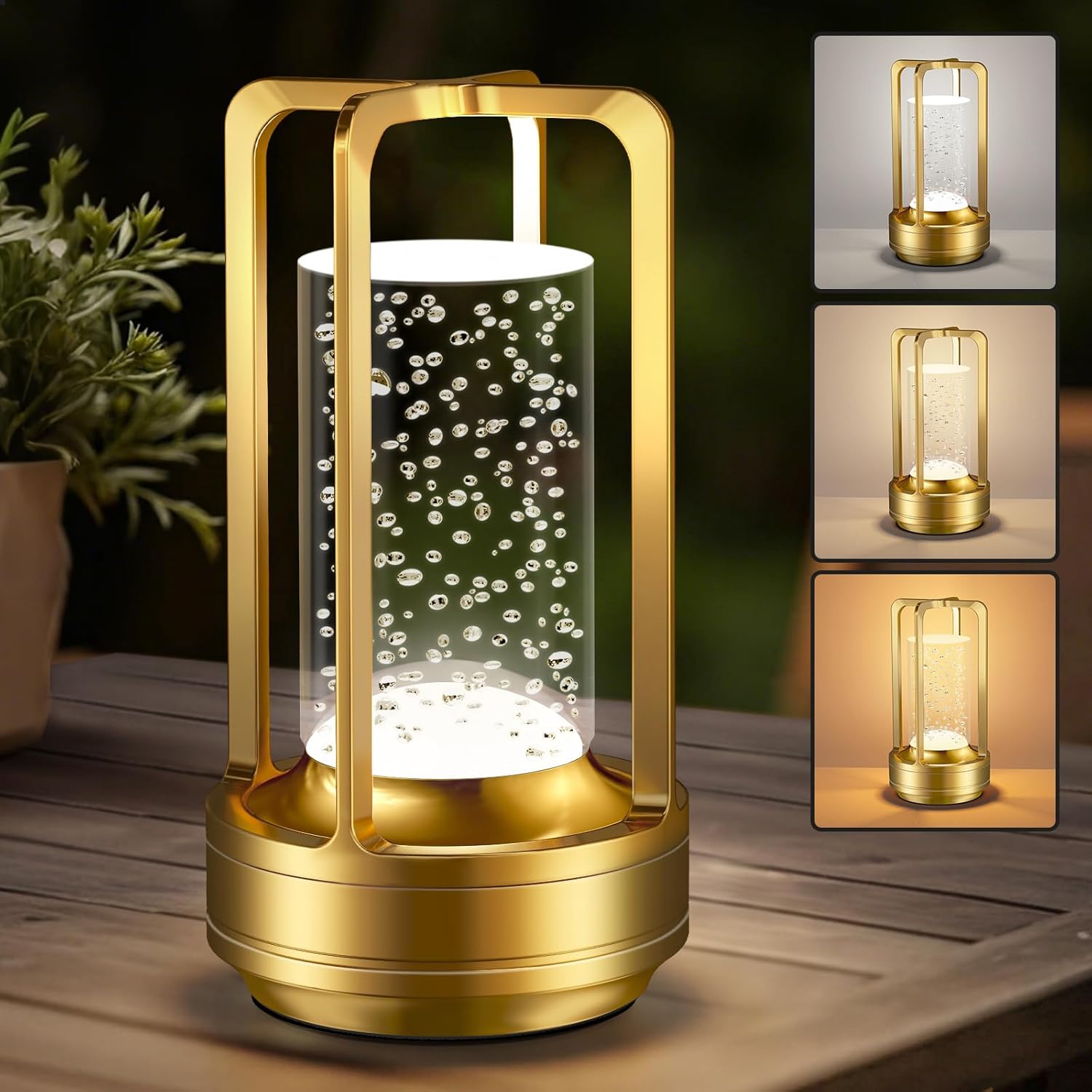 - Touch-Controlled Table Lamp with Adjustable Brightness: Switch between warm white, soft warm, and crisp white light with just a touch on this rechargeable table lamp. The stepless dimming (5%-100%) lets you customize brightness from 3000K to 6000K. Simply tap to change light modes or long-press to adjust brightness. Whether for outdoor camping, intimate dinners, or cozy nights, this gold table lamp creates the perfect ambiance.