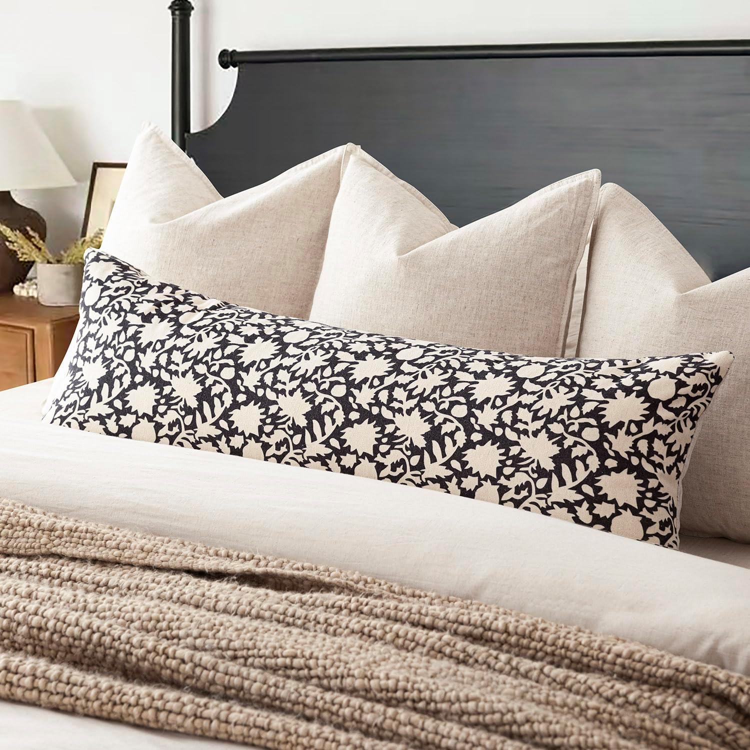Foindtower Set of 2 Decorative Long Body Lumbar Throw Pillow Covers Accent Farmhouse Cushion Covers Neutral Vintage Pillowcase for Couch Sofa Bedroom Living Room Home Decor Outdoor14×36 Inch,Black