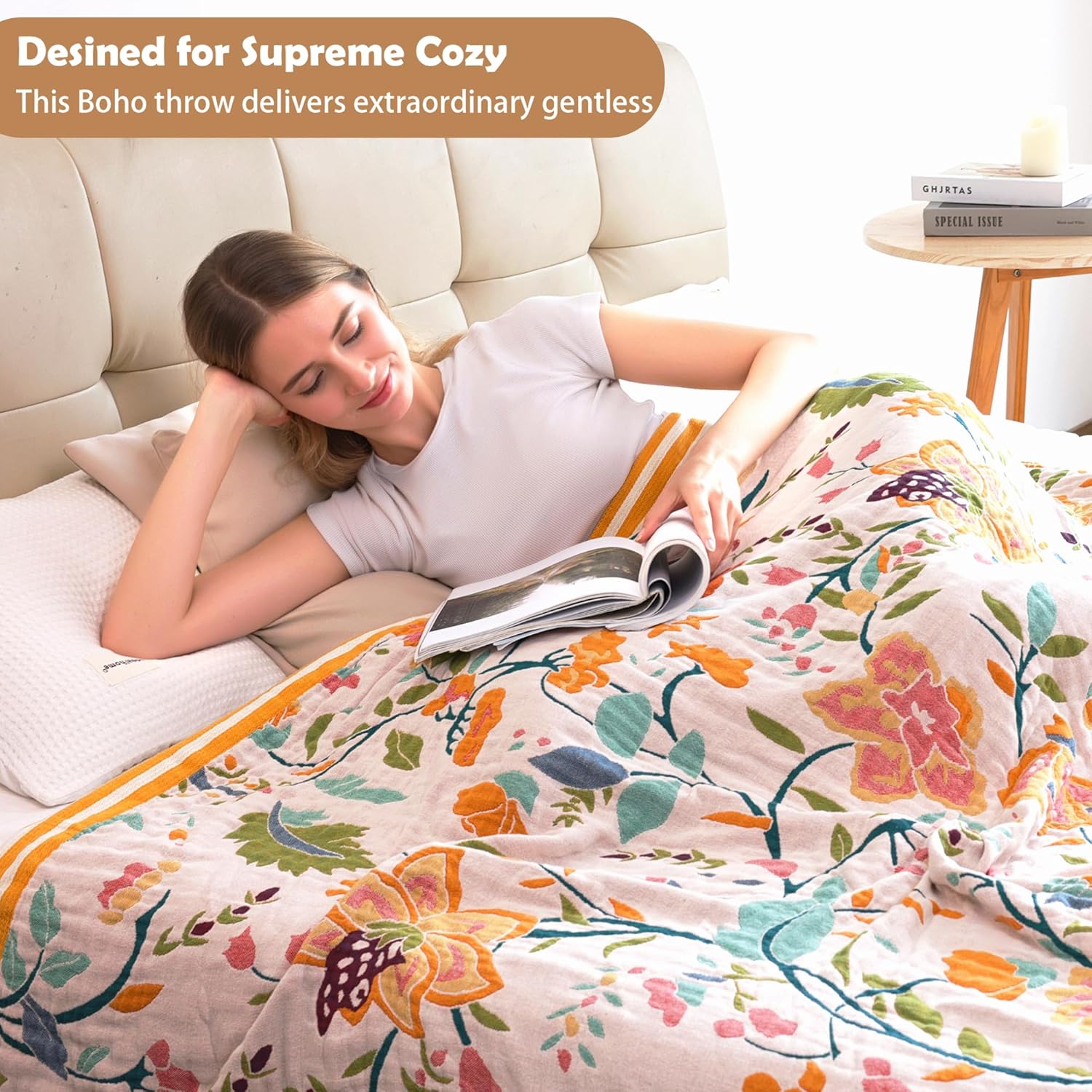 - THOUGHTFUL GIFT-READY : Cute and delicate patterns are sure to be loved,our floral cotton throws make heartfelt gifts for Birthday's, Valentines Day, Mother's Day, Christmas,or bridal showers - Show Your Love with a Custom Blanket She’ll Treasure Forever