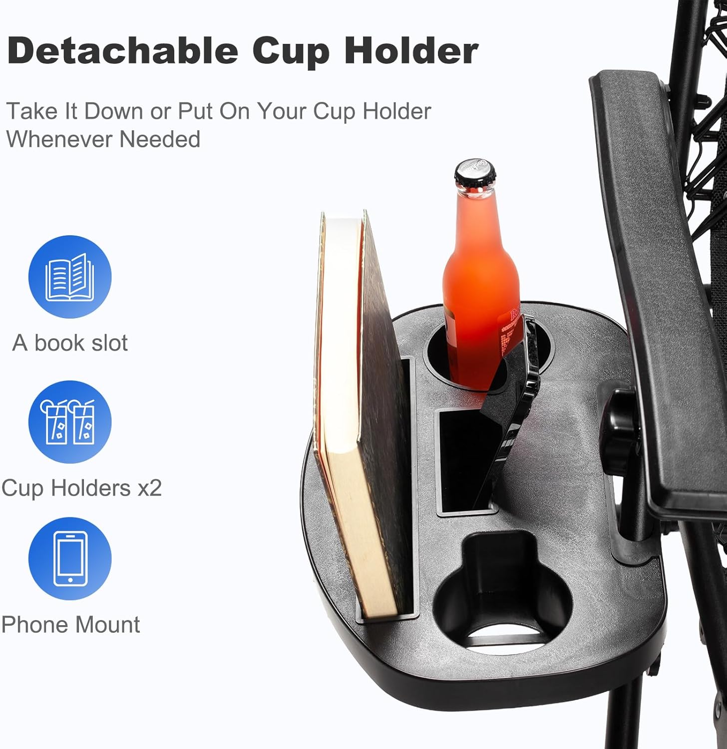 - CONVENIENT FEATURES: Our Lounge Chairs come with a detachable tray that includes two cup holders, a phone holder, and a tablet holder, so you can keep your favorite drinks and media devices close at hand.