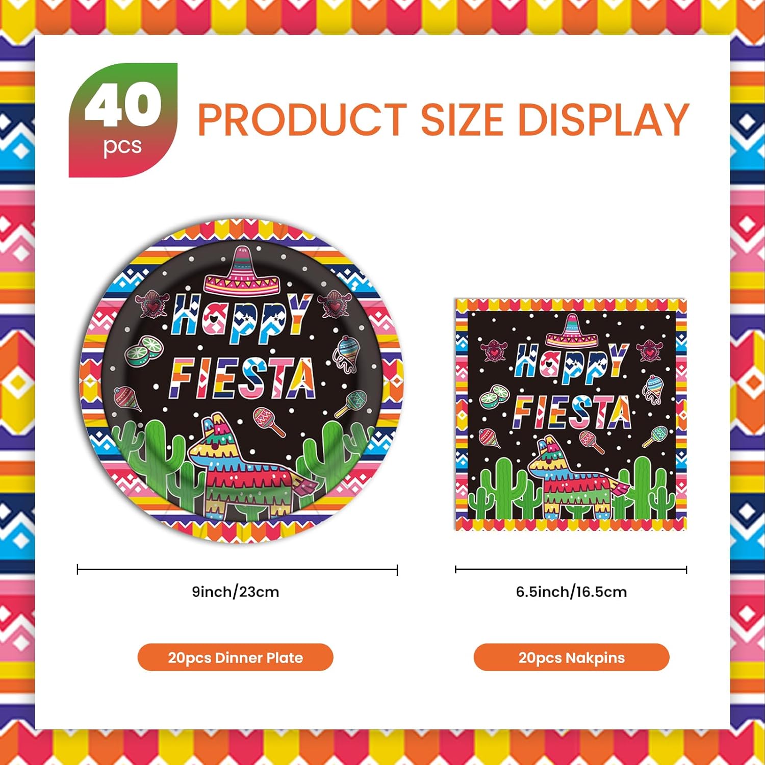 - Fiesta Party Essentials Kit - 20 vibrant 9-inch Mexican paper plates + 20 coordinating napkins. Perfect for fiesta themed party decorations, taco nights, or Cinco de mayo celebrations!