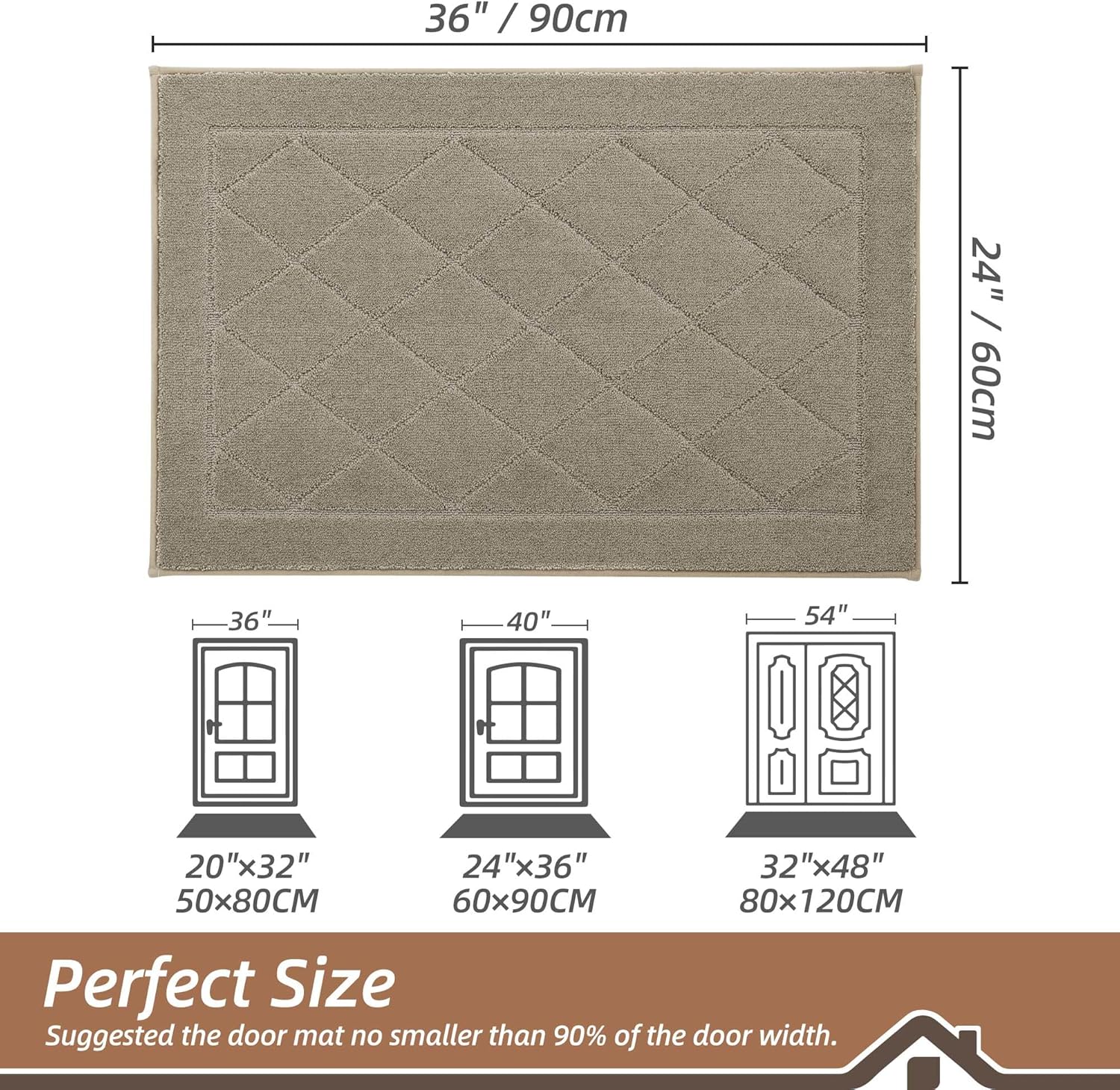 - Stylish and Low Profile Design: Fashionable geometric patterns are suitable for most kinds of home décor. Our doormats measure 24" x 36" x 0.45", low-profile design and reinforced overlock edges to ensure that doors won't get stuck or the door rug go curling. Note: Please confirm the height of the door gap before purchasing