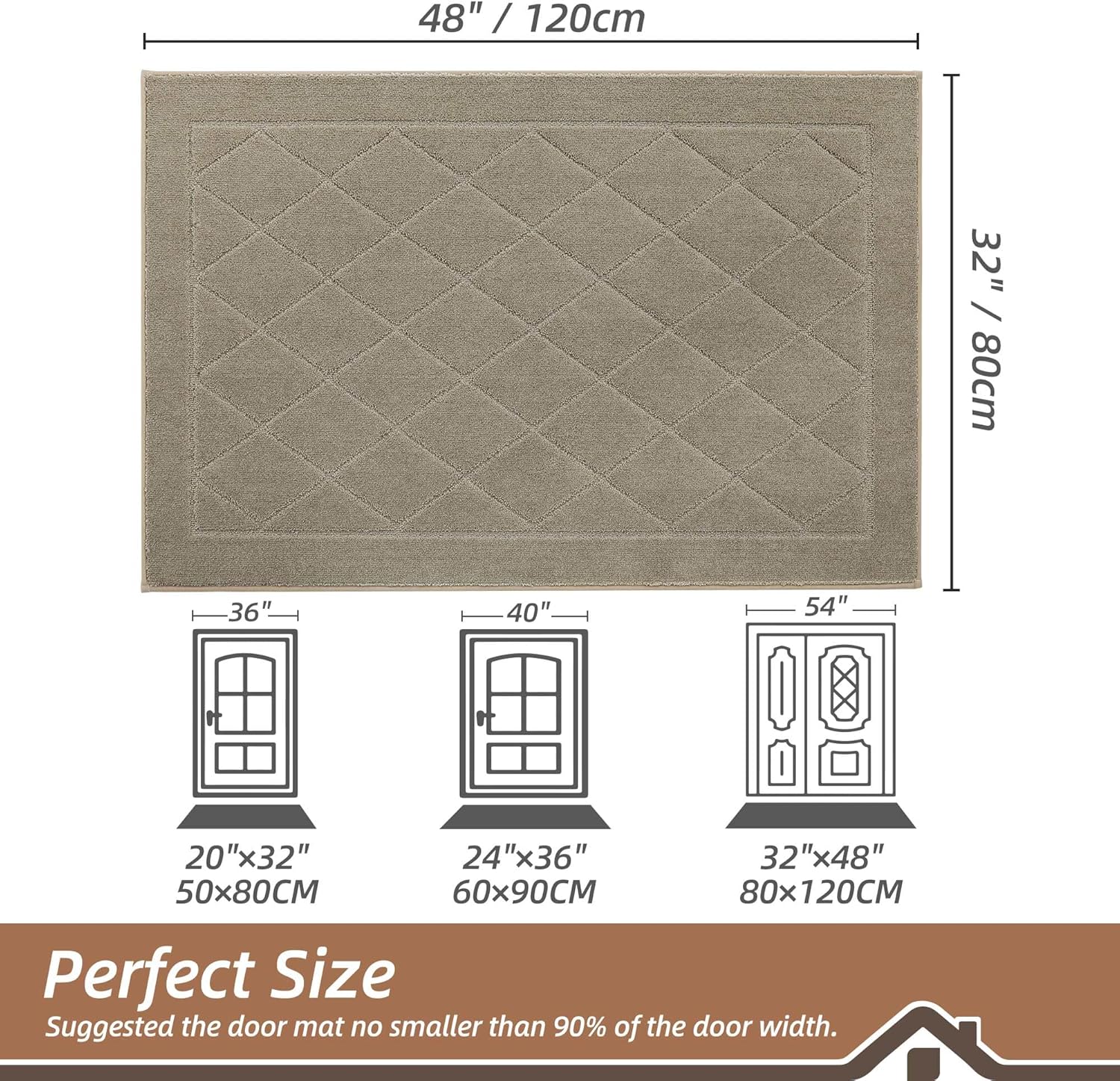 - Stylish and Low Profile Design: Fashionable geometric patterns are suitable for most kinds of home décor. Our doormats measure 32" x 48" x 0.45", low-profile design and reinforced overlock edges to ensure that doors won't get stuck or the door rug go curling. Note: Please confirm the height of the door gap before purchasing