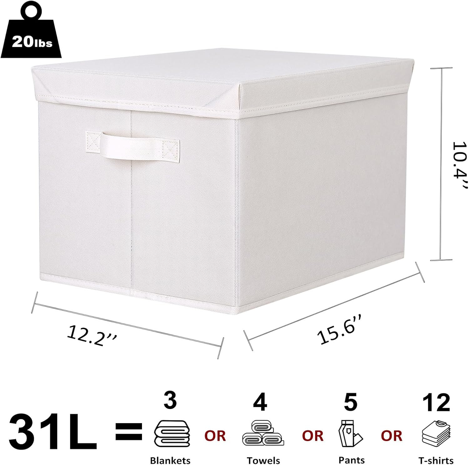 - Large Size & Versatile Storage: Measuring 15.6"L x 12.2"W x 10.4"H with 31L capacity, these extra large closet storage bins hold clothes, towels, or linens with ease, perfect for home, dorm, or nursery use.