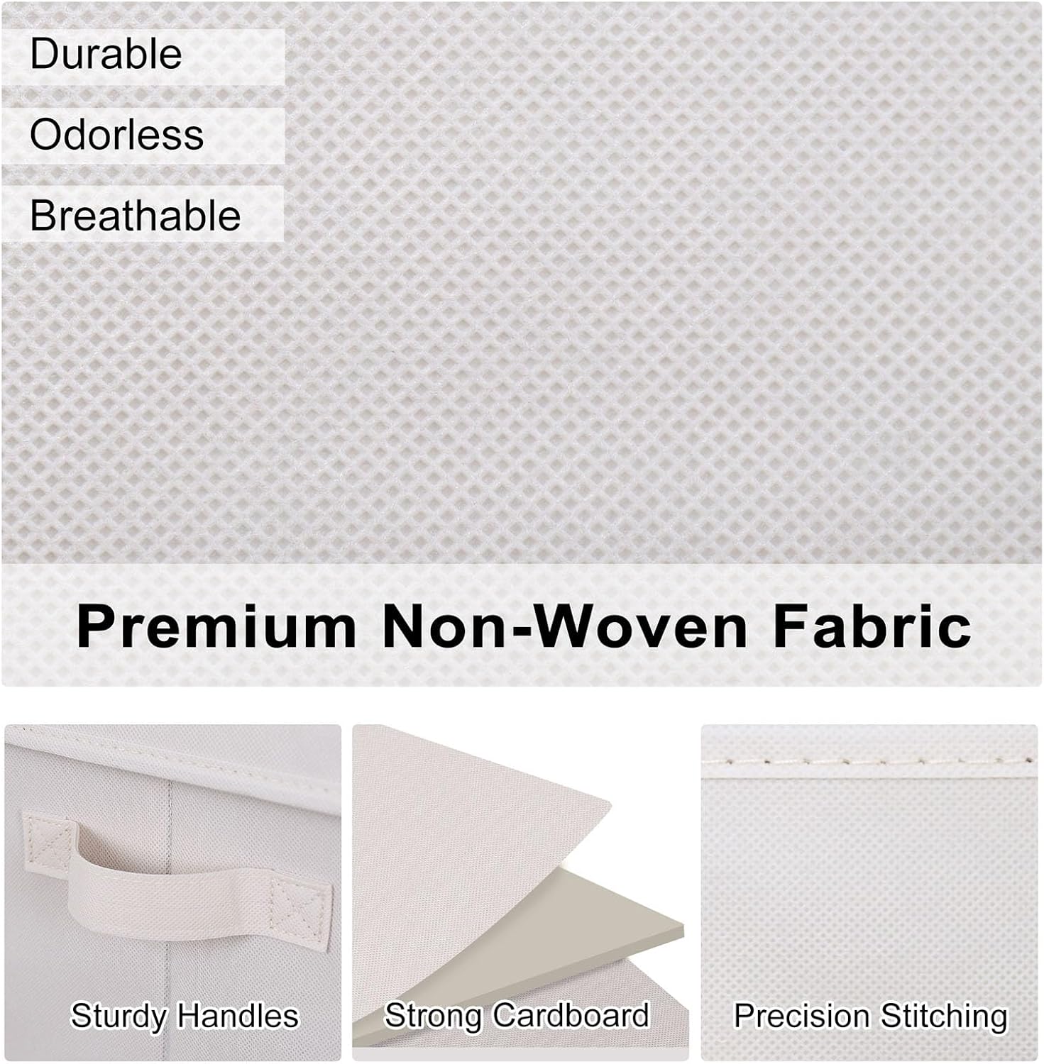 - Premium Material: These storage baskets are made from odorless non-woven fabric and reinforced with sturdy cardboard for durability.