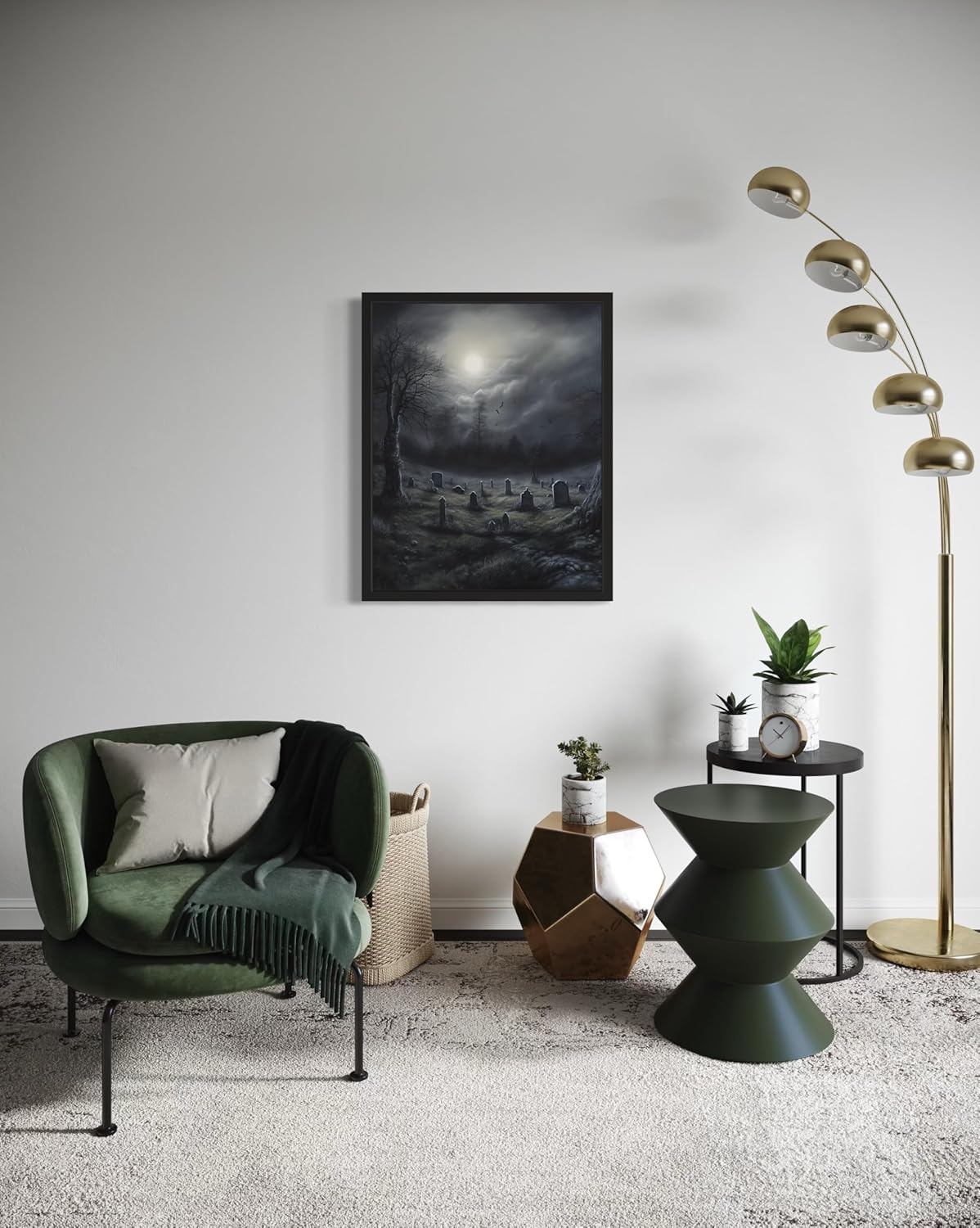 Gothic Graveyard Poster Art Print, Halloween Scary Vintage Wall Art Academia Spooky Painting Decoration for Horror Prints, Posters Bedroom Decor 89 (Gothic Graveyard, 8 x 10 inches, Black Frame)