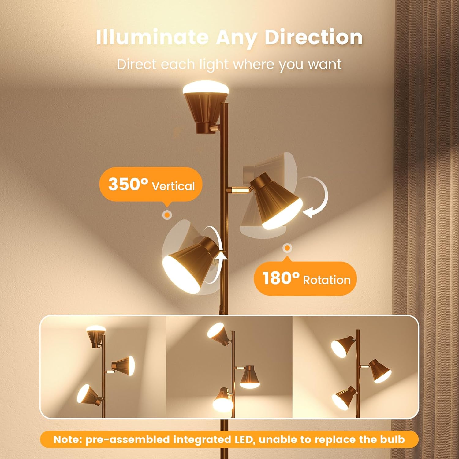 - 【LED Floor Lamp with Modern Design】SIBRILLE tree floor lamp adopts a unique 3-light design, each light supports 350° rotation and 180° vertical adjustment, illuminate any direction you want. With its stylish design and minimalistic sleek lines, this standing lamp fits well with modern, urban, casual, and artistic decor styles, it is a ideal floor lamps for living room, bedroom, office, corner, study, bar, club, restaurant, etc