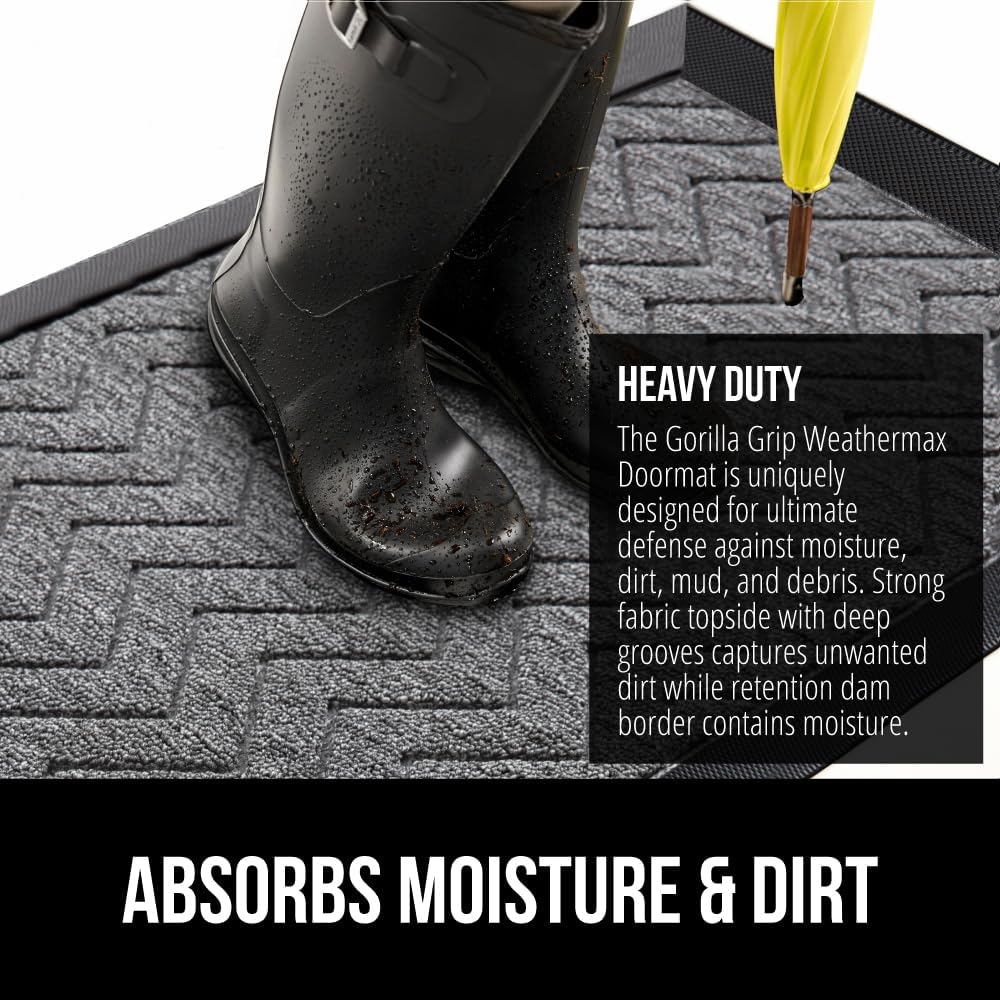 - THE ORIGINAL WEATHERMAX ALL SEASON DOORMAT: Gorilla Grip's Original WeatherMax doormat is built tough with a heavy duty, yet soft and flexible construction; deep grooves, beveled rubber border and retention dam help capture dirt, debris and moisture