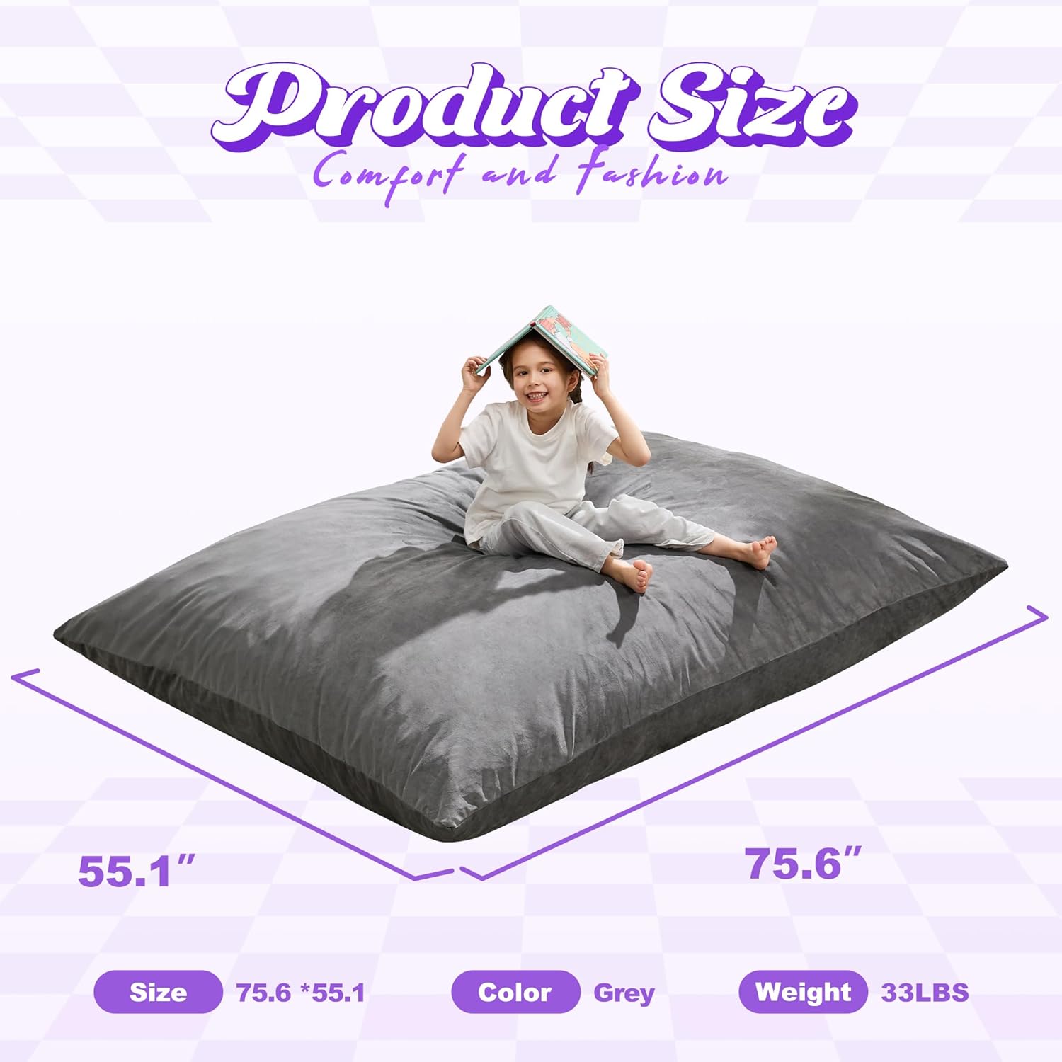 - Memory Foam Bean Bag Chair: The 3-in-1 giant bean bag chair stands out with its high-density memory foam filling, it can bounce back quickly, not only provide comfort but also support. The thickness of the bean bag is up to knees when you lay it down flat.