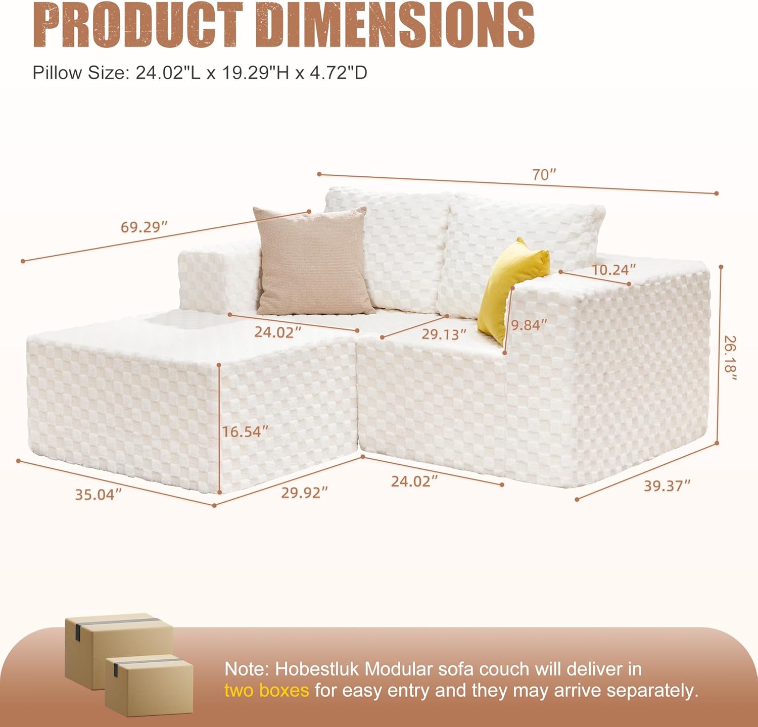 Hobestluk Modular Sectional Sofa Memory Foam Couch L Shape Sofa for Living Room Loveseat with Chaise Lounge Cloud Couch with Removable Cover (Plush White, Loveseat with Chaise)