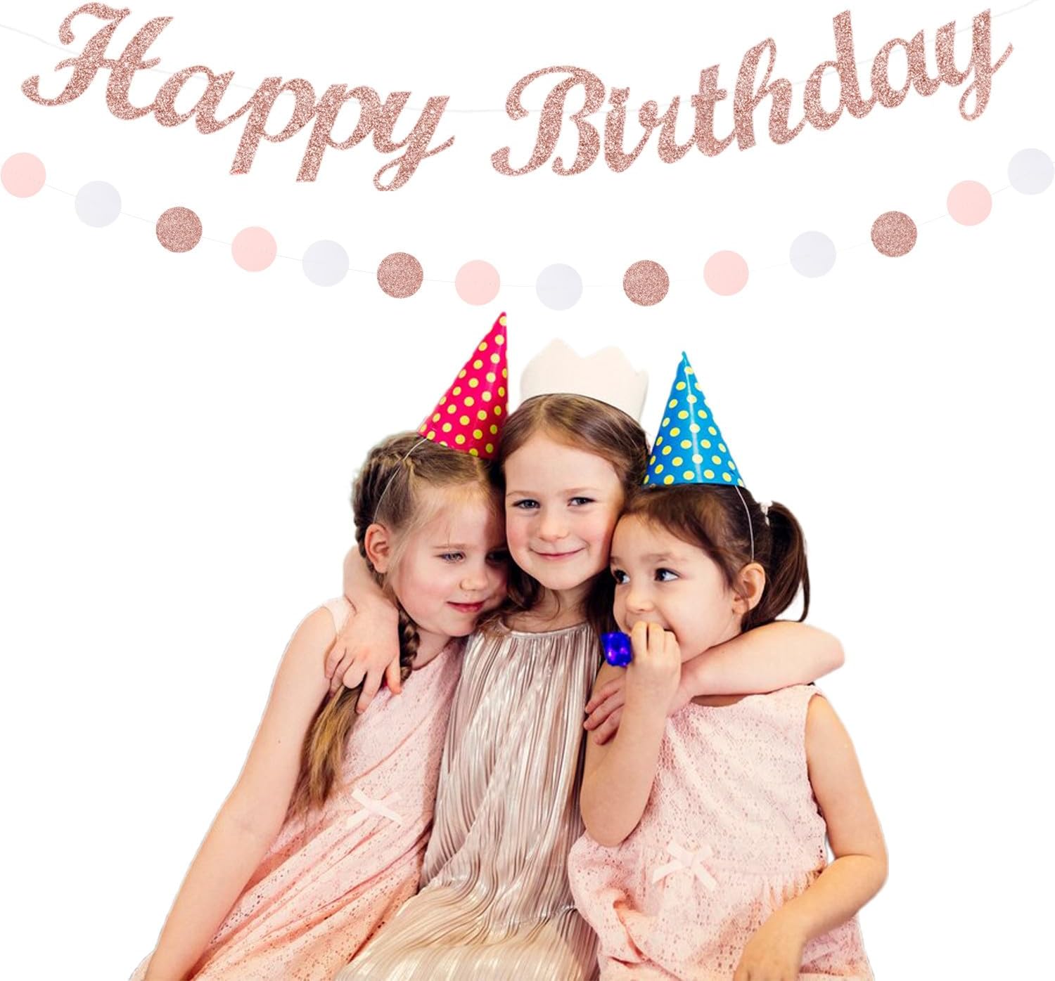 Light-Pink Rose-Gold Birthday Garland Party-Decorations - 14pcs Happy Banner Women Paper Flowers Lanterns Tissue Pom Poms,Streamers Fans Honeycomb Girls Adult Women Kids Hanging Supplies Decor Hugfond