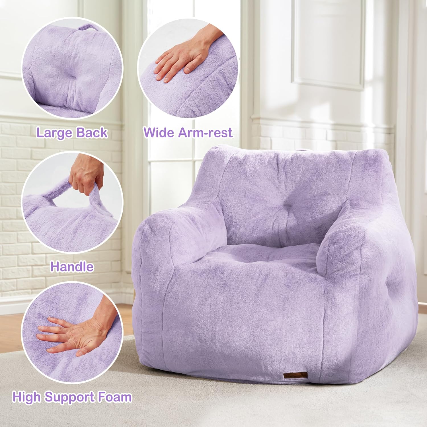 Hobestluk Bean Bag Chair for Adult Small Bean Bag Chairs with Arms Furry Beanbag Chair with Foam Filler Stuffed Bean Bag Sofa for Reading in Bedroom Living Room and Dorms (Purple)