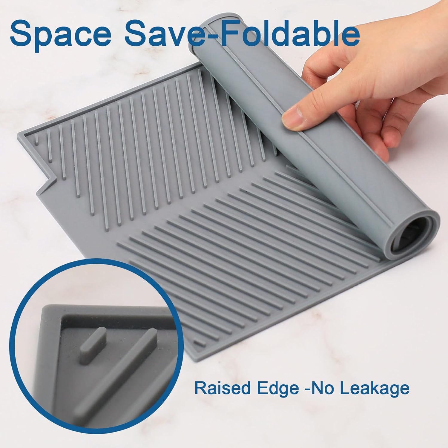 - CLEAN-UP & STORAGE EASILY: Just rinse the silicone drying pad with water or pop it in the dishwasher. Fold it up, flex it as needed, and use the handy hanging hole to keep it dry and ready for next time.