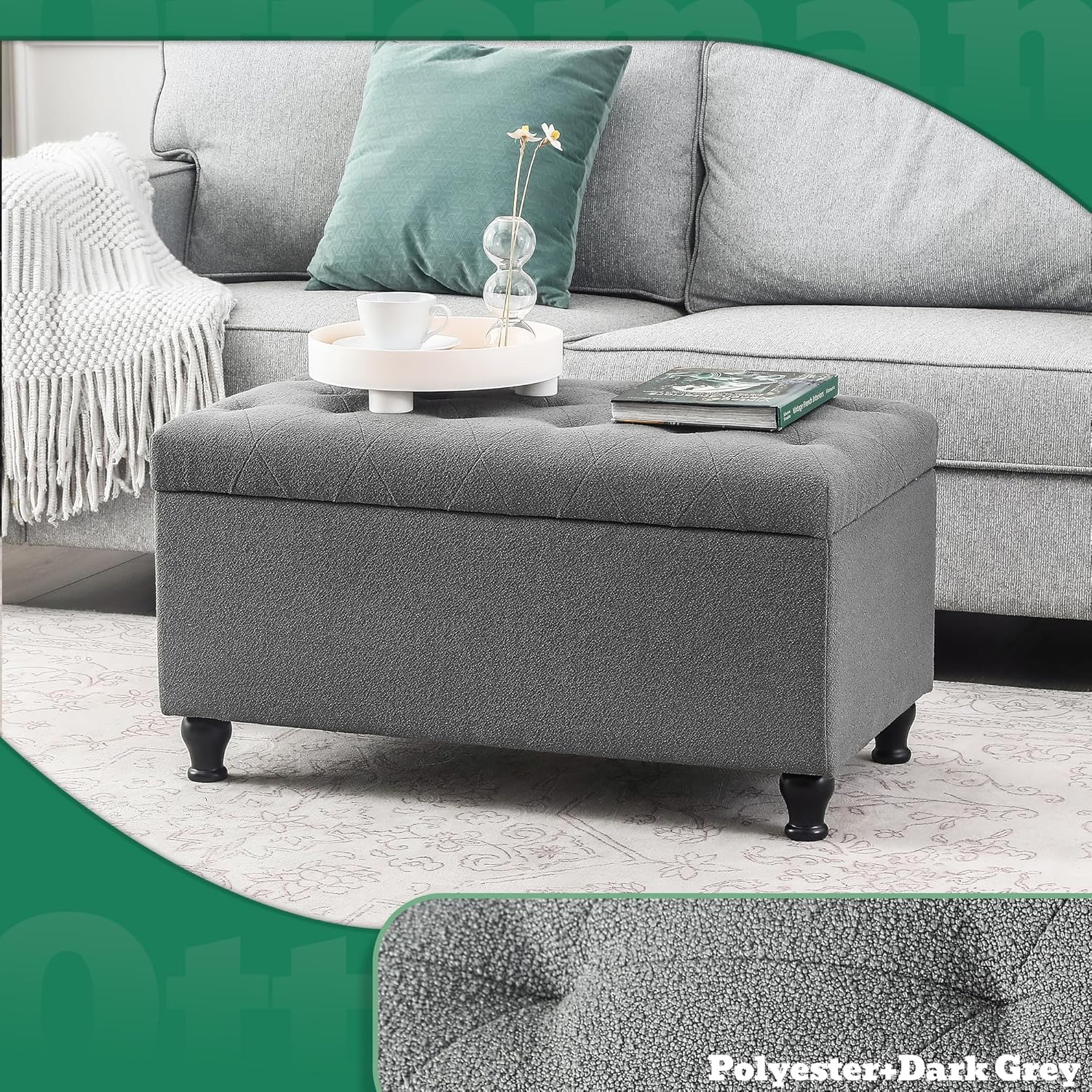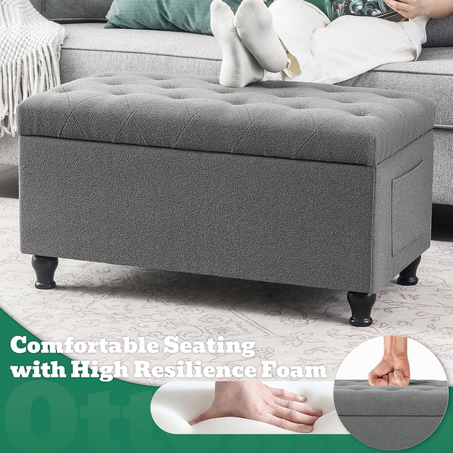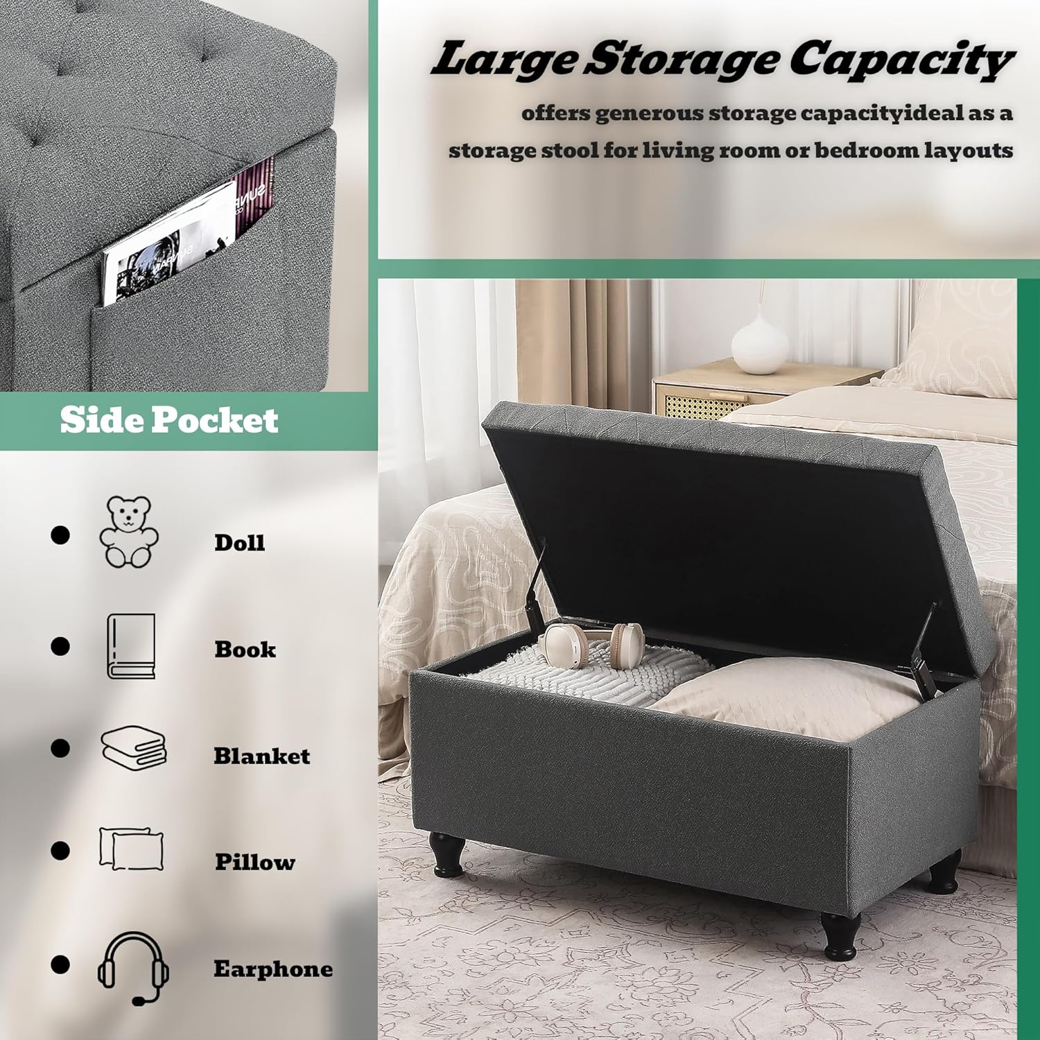 Ottoman with Storage 32'' Ottoman Storage Bench Fabric Ottomans Footstools Upholstered Foot Rest Stool for Couch, Living Room, Bedroom, Entrance Shoe Bench Gray