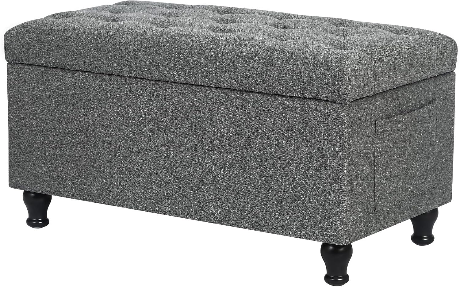 - 【Storage Ottomans】– The 32 inch rectangle ottoman with storage offers generous storage capacity, perfect for stashing blankets,pillows, books, game controllers and other leisure and entertainment items . The smooth, hinged top lifts effortlessly, while the built-in side pocket adds quick-access storage for remotes, magazines, or small essentials.