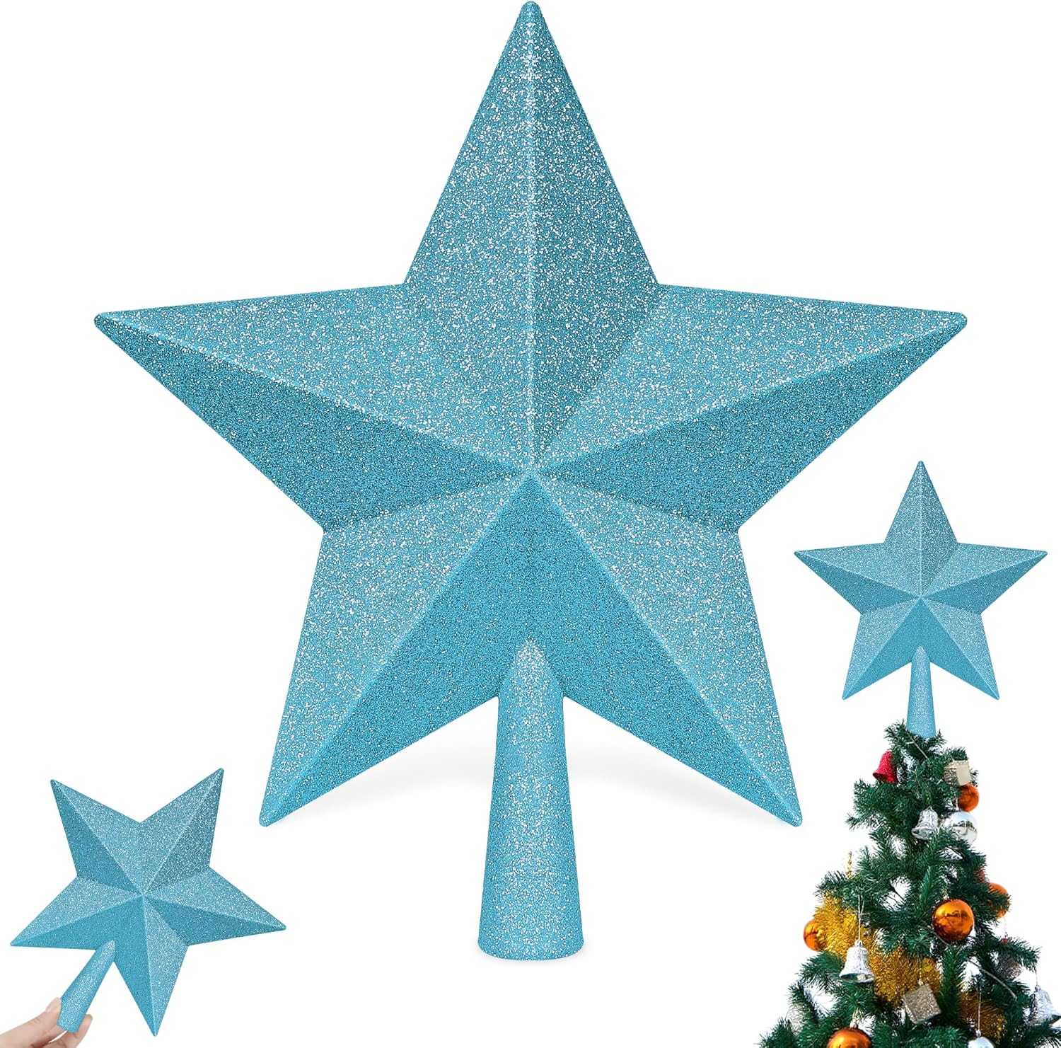 Christmas Tree Topper, Blue 10" 3D Star Tree Topper Decorations, Large Christmas Tree Topper Bethlehem Star Ornament, Glitter Shatterproof Christmas Tree Decor for Holiday Xmas Home Indoor Outdoor