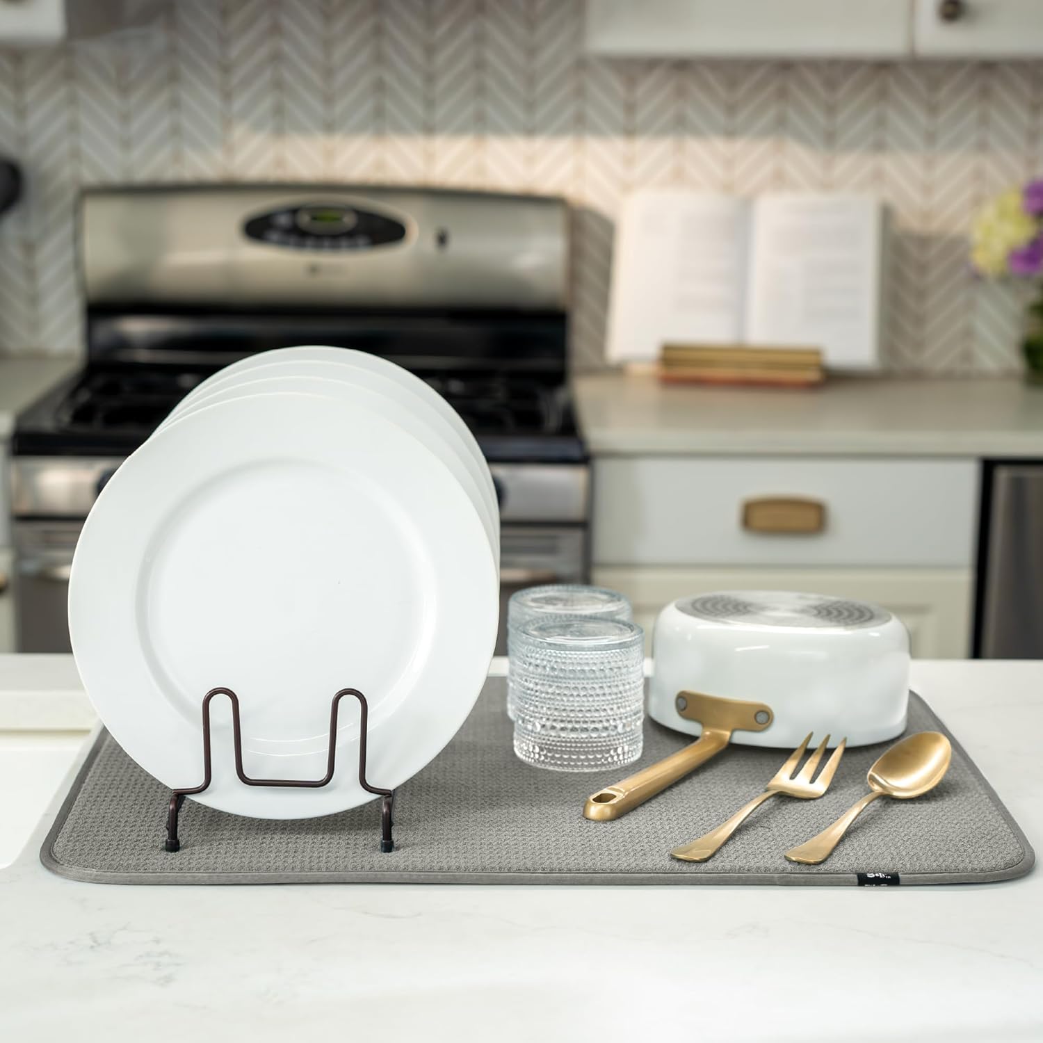 S&T INC. Dish Drying Mat XL, 18” x 24”, Absorbent Microfiber Kitchen Counter Mat, Dish Drying Pad for Dishes, Utensils, Pots and Pans, Extra Large, Grey