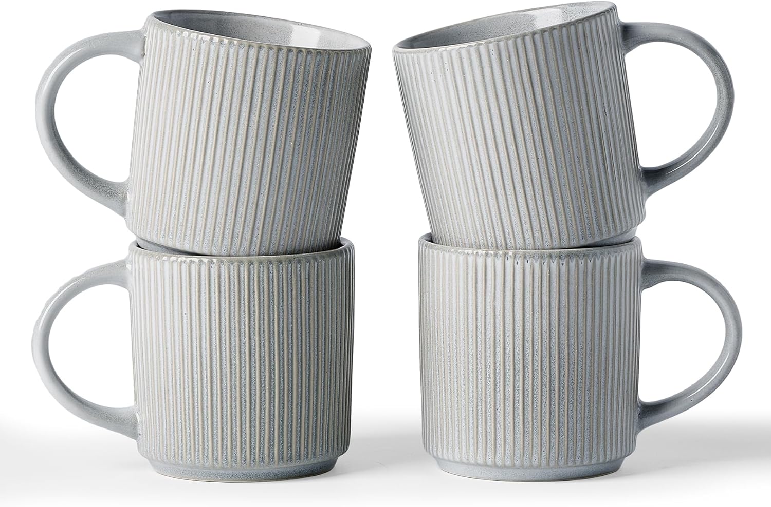 famiware Coffee Mug Set for 4, Star 12 oz Catering Mugs Cup Set with Handle for Coffee, Tea, Cocoa, Milk - Ceramic Stoneware Drinkware Set, Matte Grey