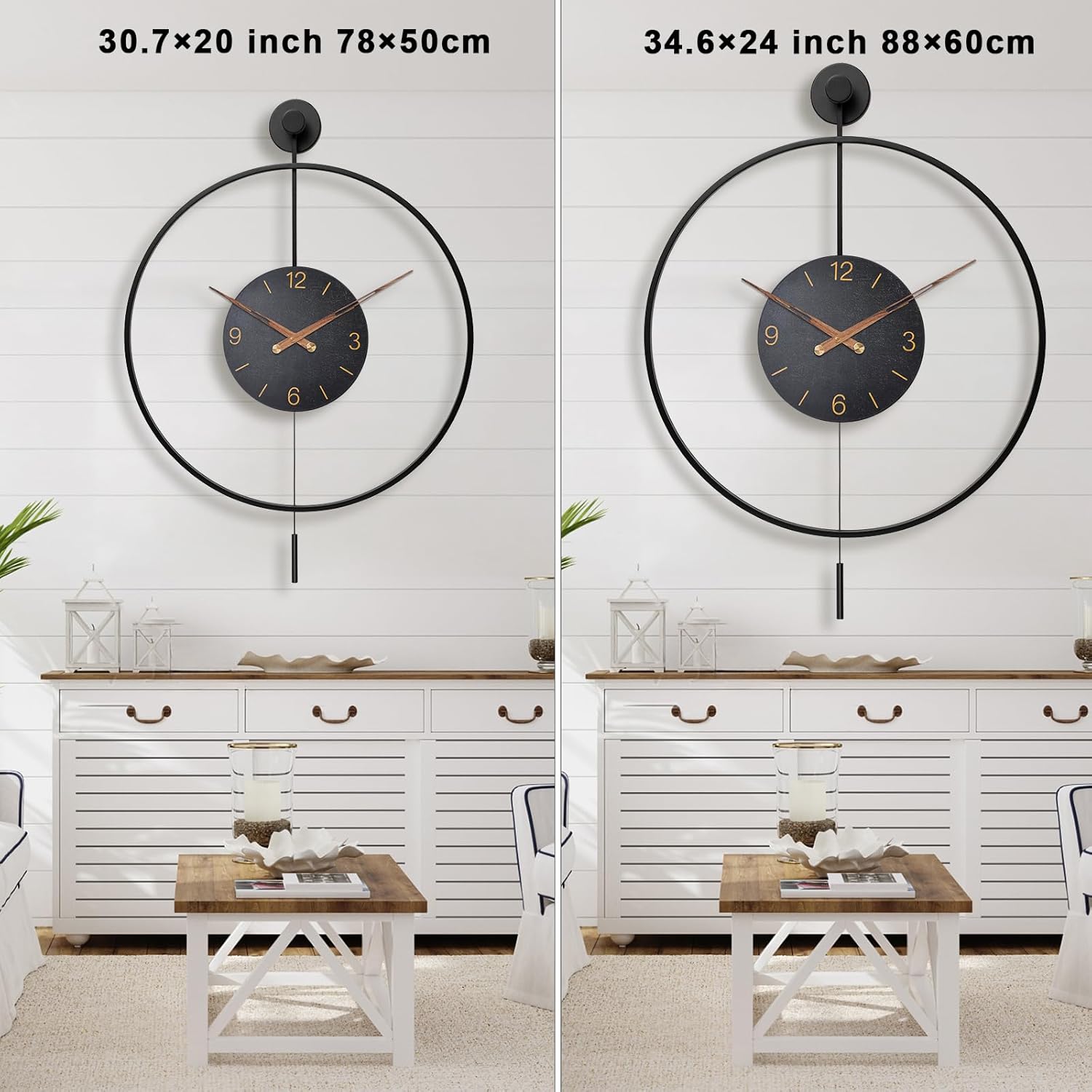 - 【What You Receive】Pytha Sight provide a 34.6×24 Inch (88×60 cm) large modern decorative pendulum wall clocks for living room,hook,a free pair of vintage gold pointers and professional customer service.If the arabic numeral pendulum wall clock does not work, please find us anytime.